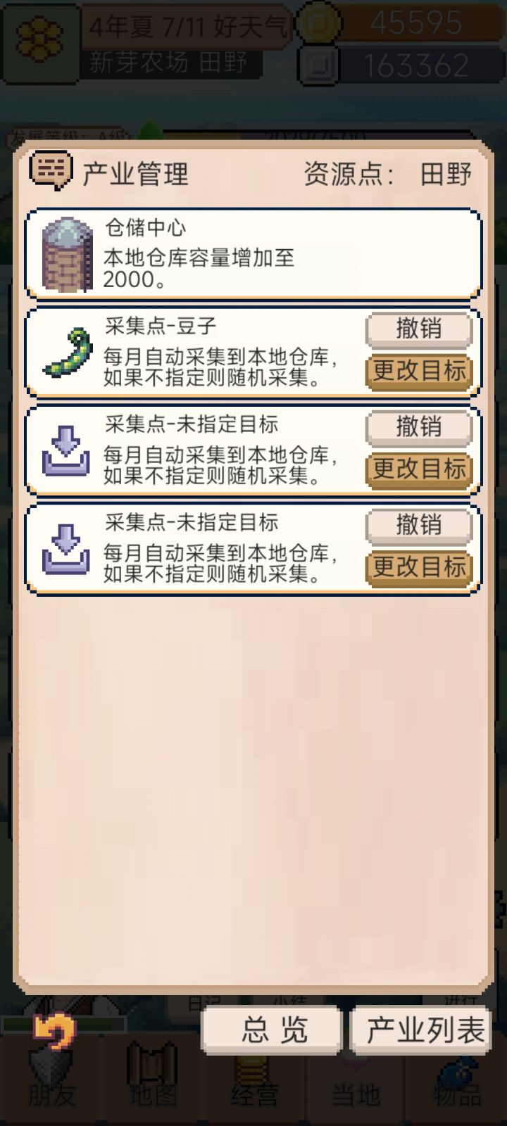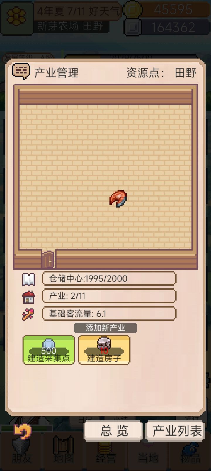 刚刚发现仓库被修复了吓一跳,不死心又研究了一会终于找到了增加城镇仓库容量的办法(顺便一提,从城镇仓库往马车转移货物的时候是硬性容量,不能超过马车负重,但是从交易所买东西到马车可以超载)新更新的产业,每个城镇规模达到B级就能解锁,目前有三个功能:仓库升级;建造采集点;建造房子。仓库升级:以新芽农场为例,最开始是50kg的储物间,第一次升级花费一万金币增加到200kg的储藏室,第二次升级需要两万五