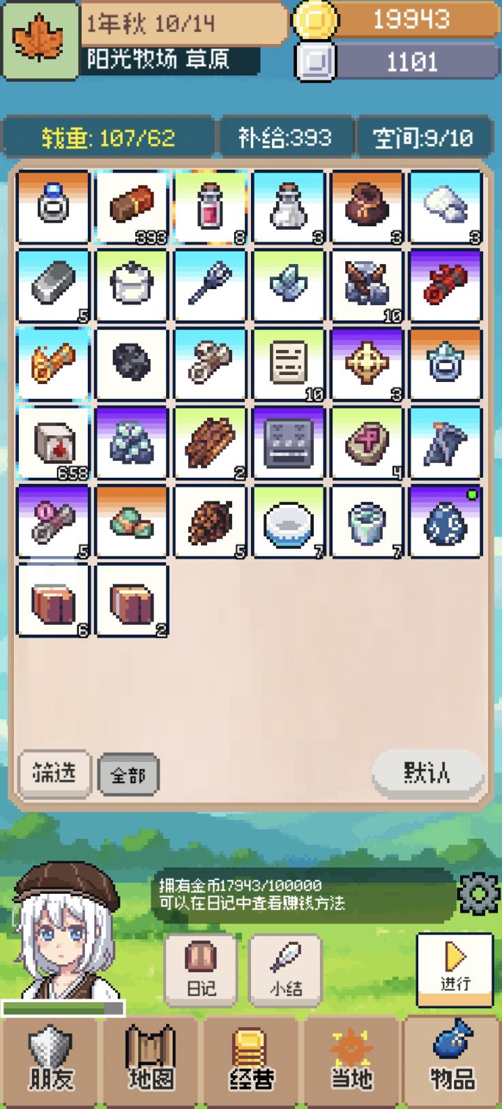❶食物有季节加成的时候体力加成翻倍。扩容buff的食物可以让扩容效果翻倍,干劲buff的食物可以让计划再执行一次,二者叠加一天可以让进度变4倍。❷每日开始才保存,所以可以试着强化宠物,强化错属性值就大退重上。这样可以一直加在正确的数值上。但是记住减重有上限,别超过数值了。❸拥有侍者技能的队友可以让大家每天+1体力,叠10个队友就能全年无休。(学过即可,覆盖也无所谓)❹飞行必定消耗一天时间,马