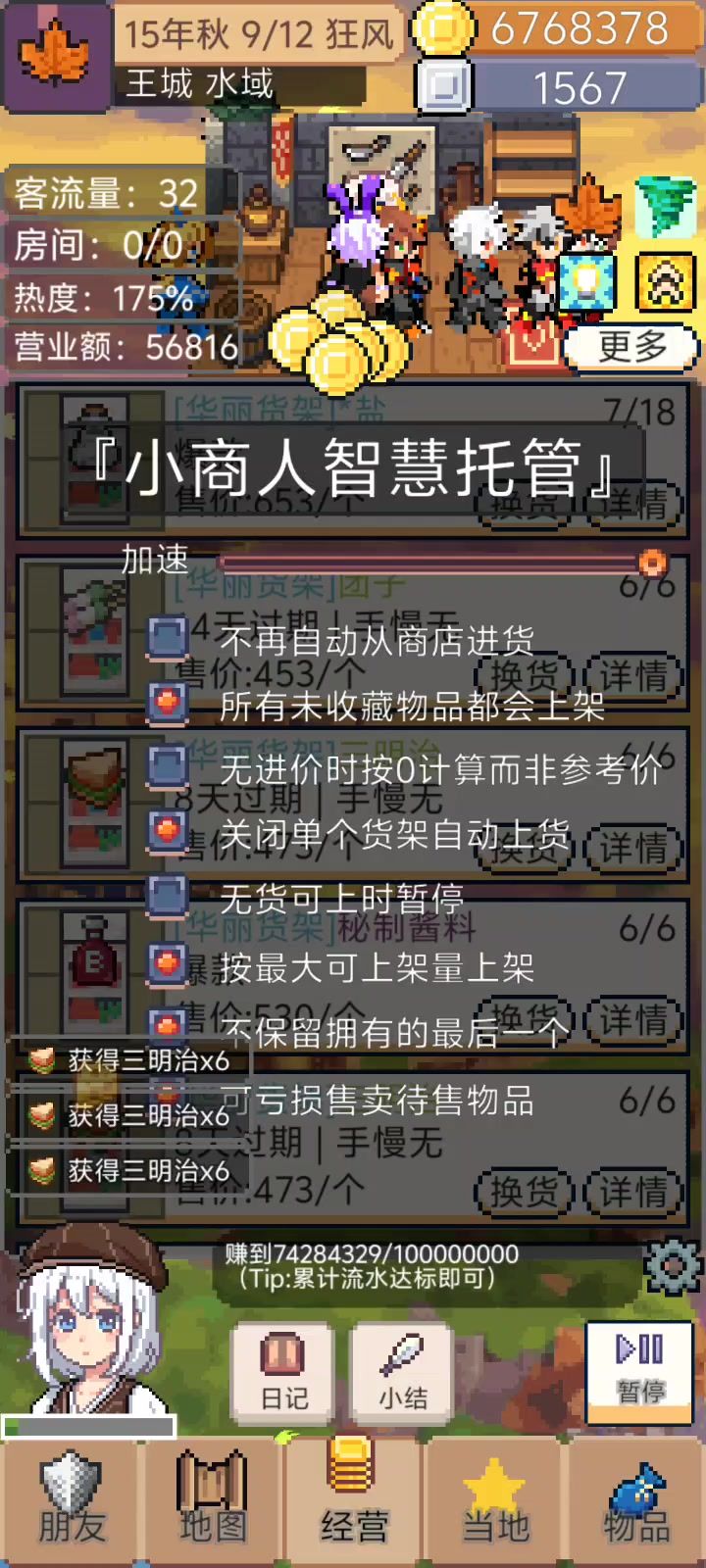卖东西的时候不点暂停跑到过节的地方会把商店里的东西卡没。还有斗技场摆摊不进货,买出来在背包也不卖跑到别的地方就能正常卖武器装备。后期摆摊实在太卡了动不动就卡死