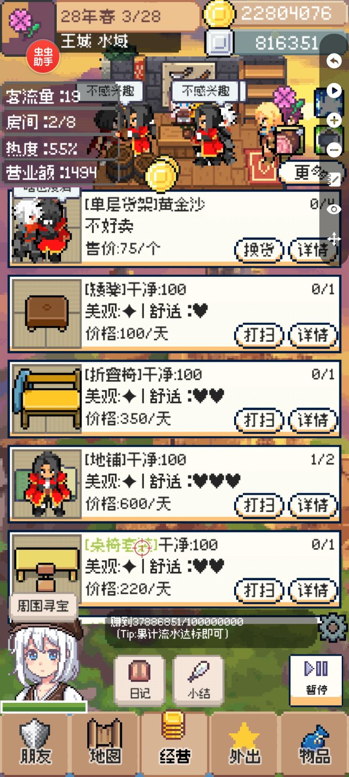 第一步就是看二十七个广告重开一个档拿官方外挂,不然这轮椅是坐不了的。现版本的旅馆流和免广告卖卷轴流大削,只有跑商还能跑。第二步在vvvlp拿重玩卷和不肝礼包,到一个地方直接拉满一直重复此操作,当然游乐场和风车村的宣传和扩大必须拿牧场的马,冒险家协会的牢克也要拿。第三步也就是最重要的一步节日,真正的轮椅啊,六月之前到行商