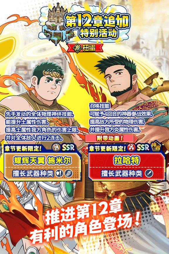 各位亲爱的导师您好:感谢您游玩《#神绊的导师 》!"主线关卡第12章追加"正式举办!▼举办期间---2025/12/12~2025/12/30 7:59---活动①剧情关卡AP消耗1/2、掉落率2倍第12章首次AP消耗0活动②第12章追加活动交换所开启!收集交换券获得豪华奖励!※交换券可从限定每日任务中取得。※每日任务将于活动开始的次日8点开放。活动③期间限定任务