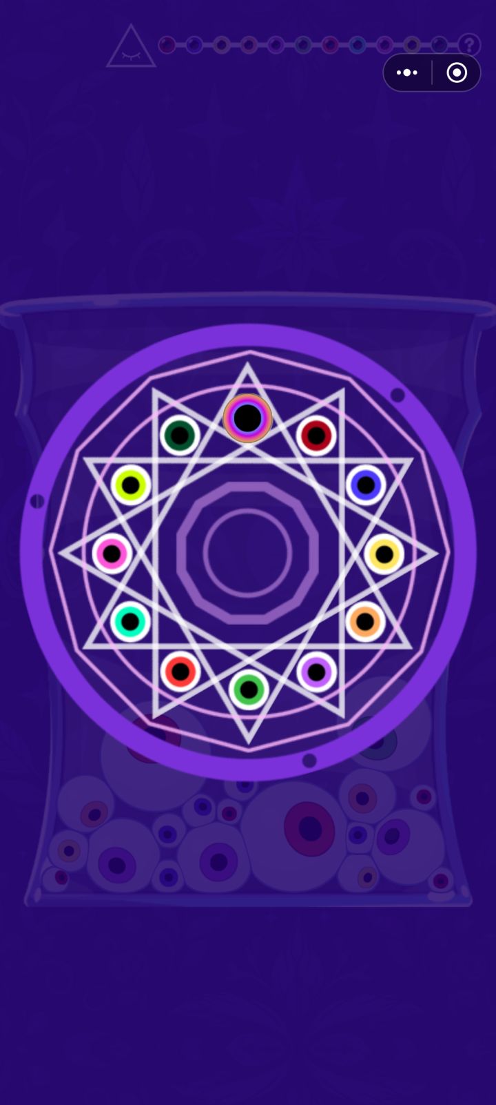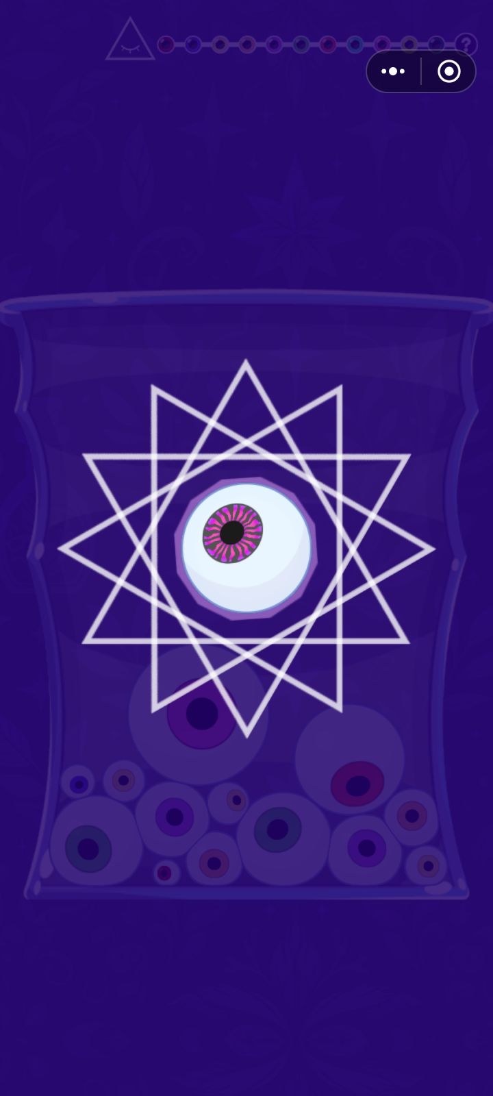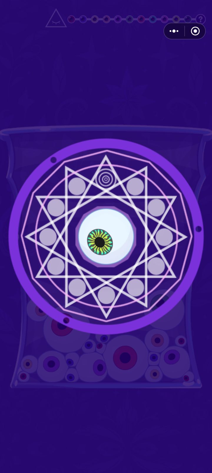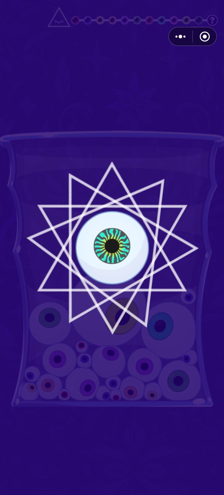 合成12个眼珠,最终激活彩虹眼珠。游戏难度较难,不过不用担心,游戏中的技能使用无广告。游戏一共有12关,游戏时长约半个小时,无选关菜单,无跳关。