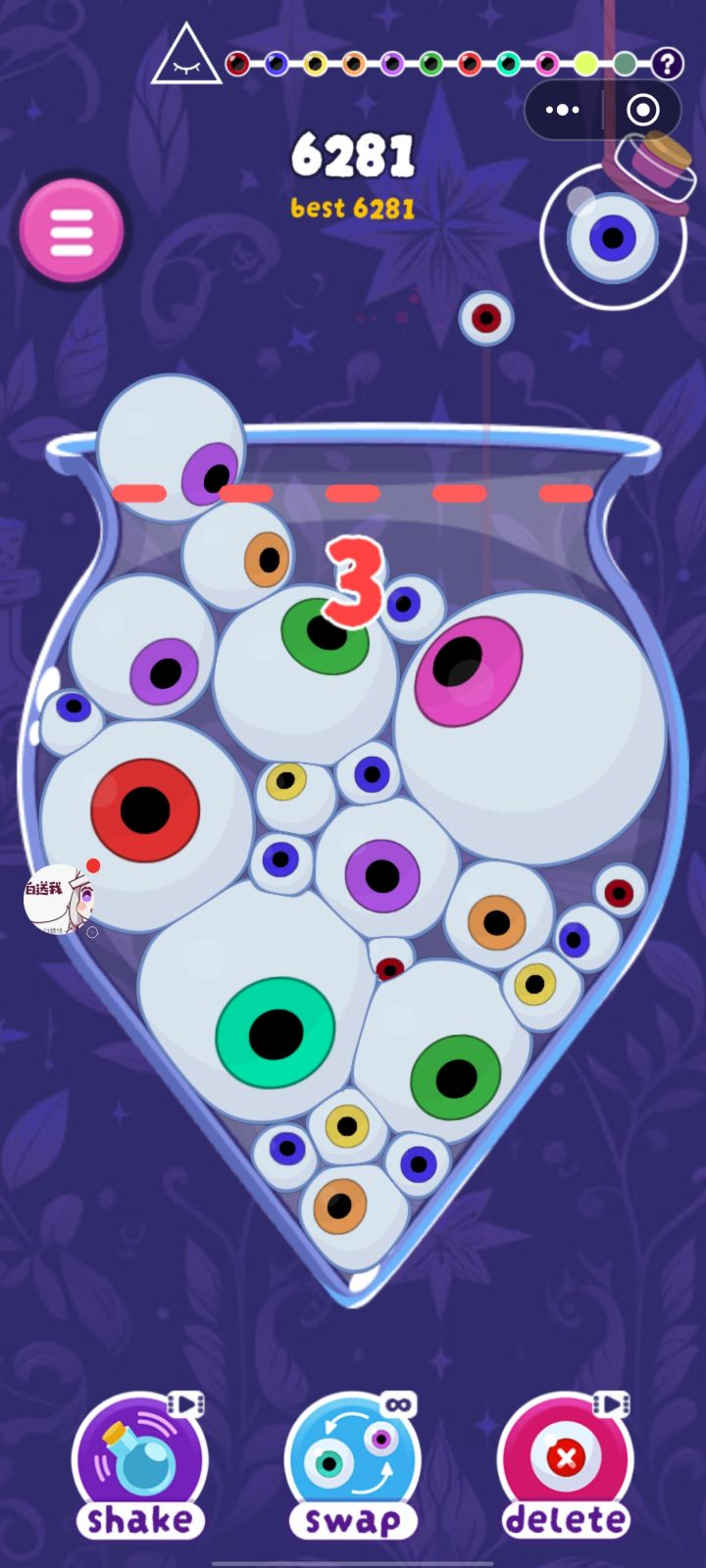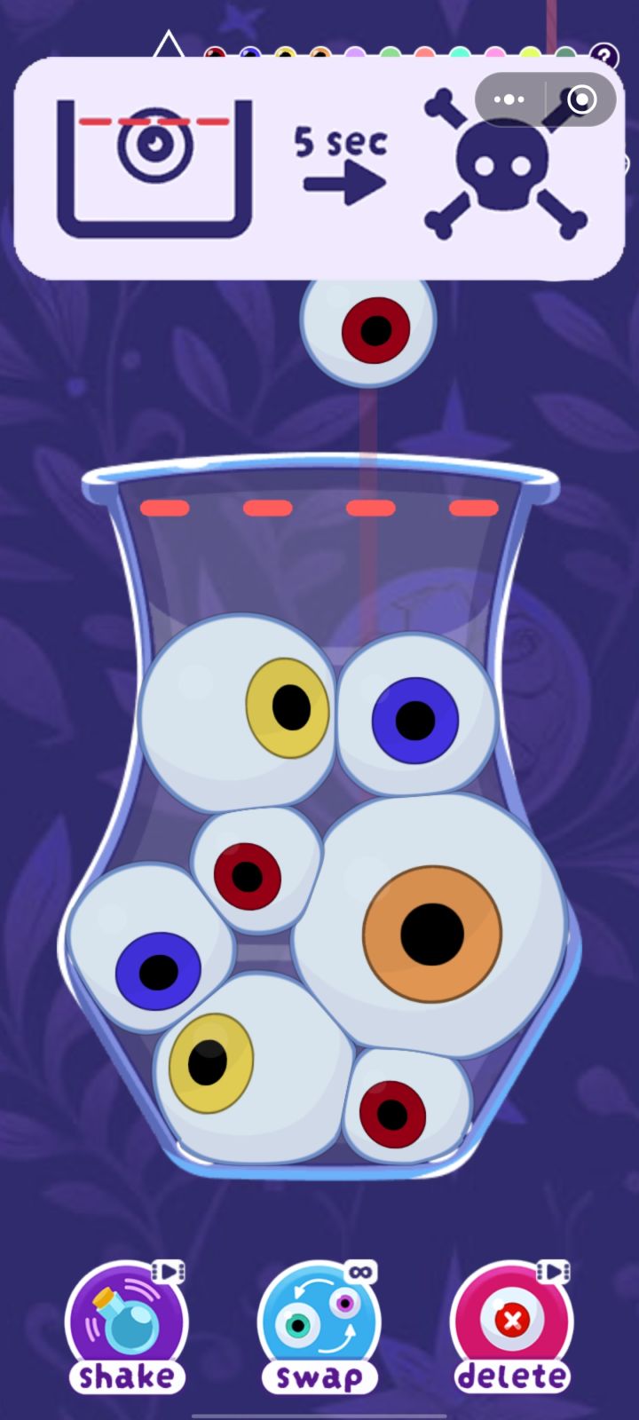 游戏虽然难度较难,但游戏内有可以无限使用的技能,也能说的过去,对于喜欢合成大西瓜游戏的玩家可以一试,对于以休闲打发时间为目的玩家可以“浅尝”一下,个人不推荐有密集恐惧症的玩家游玩,除非能忍住一群小眼睛透着屏幕看着你。