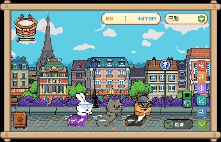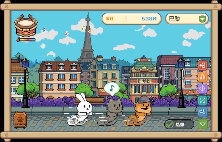 轻松惬意的挂机点击游戏,甚至使用键盘或者是鼠标的中键也可以让小动物跑起来。虽然试玩版只提供了巴黎这一个城市,但艾尔菲铁塔各种小洋楼的背景。当然最令人惊喜的是这段相当贴合法国这段配乐,以华尔兹为基底的旋律,辅以诗意一般的音乐风格,采用用的乐器也非常的独特的风琴、口风琴这类的核心演奏,旋律简单至极,但可以将独特的法国风光如同缪塞的诗集一样缓缓展开,那本诗集的封面烫金的花体字在夕阳的余晖下继续散发着独特的浪漫美感。