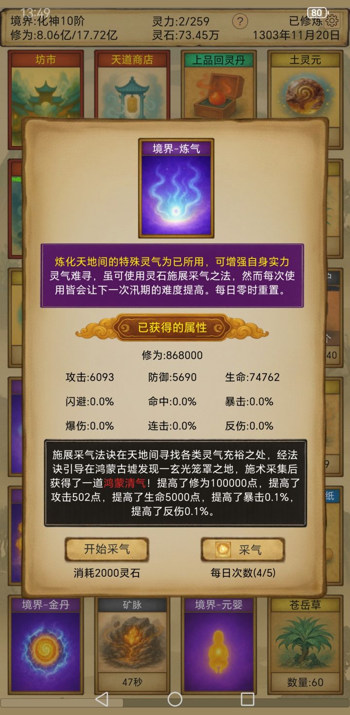 是啥子原因:1、获得一个红色真气,实际暴击和反伤都没加;2、没图推了,境界卡也没了