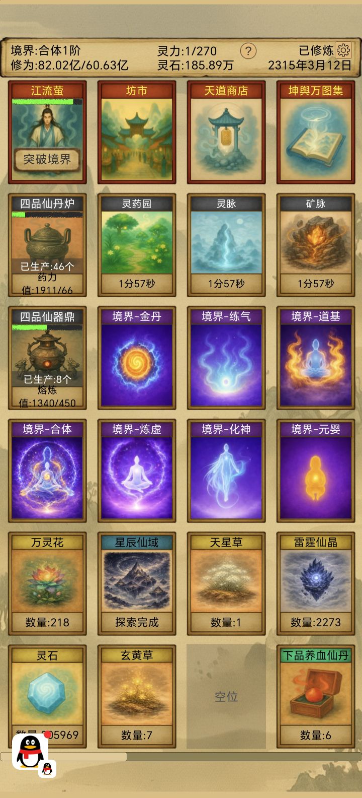 作为小小的元婴蝼蚁,小谈一下修行感悟1,广子,要玩的这个要看,也必看,加修行速度的功法从这里获得,不然升级很难,靠炼丹杯水车薪2,过图会给3种草药,一种炼丹草,一种修为草,一种回血草,炼丹草药性最高,炼丹用,建议先升级药园再炼丹,修为草吃了留着都行,回血草过图后补血3,过图给的矿石,建议先升级矿场,再升灵石矿,然后练器,有一套差不多的就行了,不用多搞4,突破修为注意了,不要一下升多级,先把