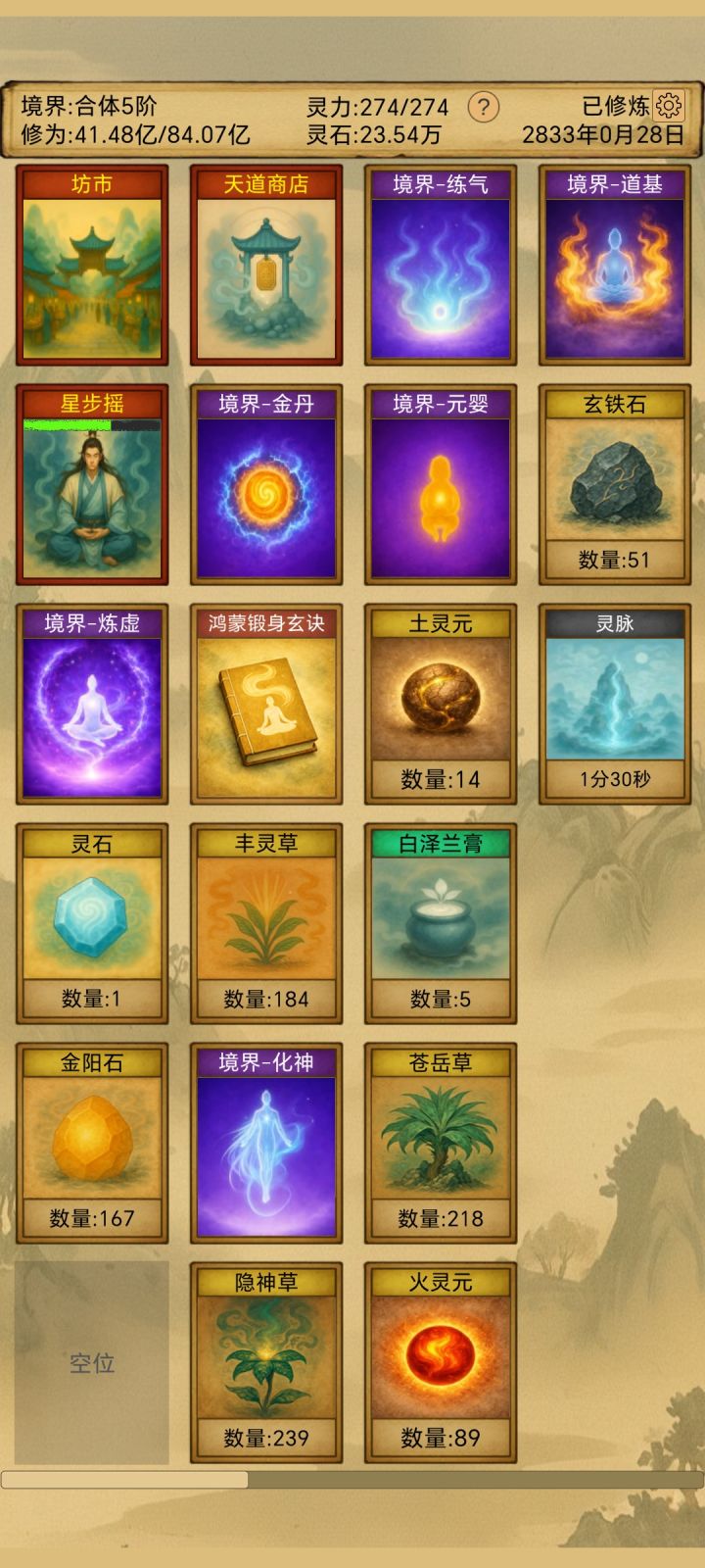 也不知道什么时候更新,签到奖励,累计广告奖励,还有灵植与灵矿的广告获取,还有新地图,什么的