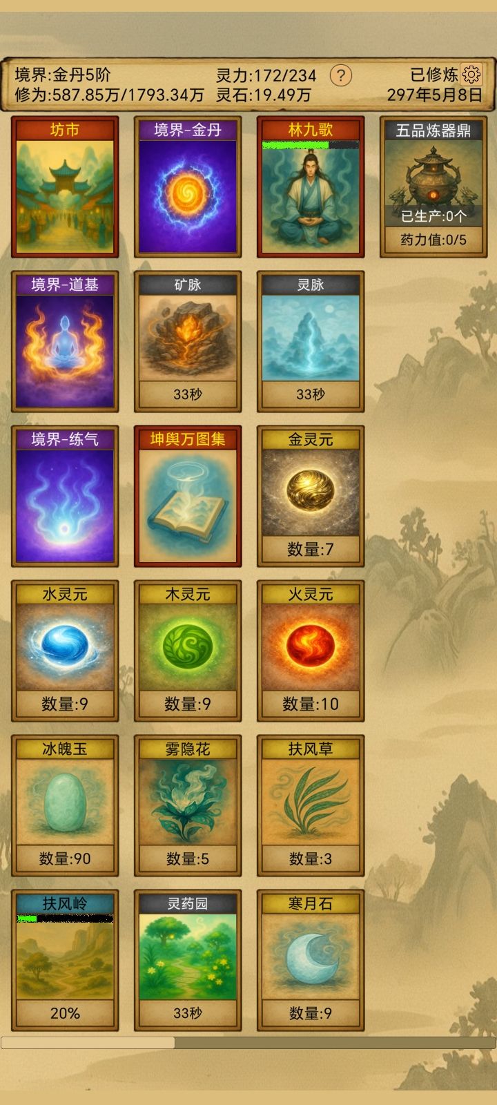 玩了两天,bug有空位放不了东西,体力不随时间恢复。建议探索地点可以按顺序叠放,现在这样地方占用太多,还乱,探索地点可以显示探索到的资源。不同丹药需要不同药草,不然弄这么多草药全部浪费