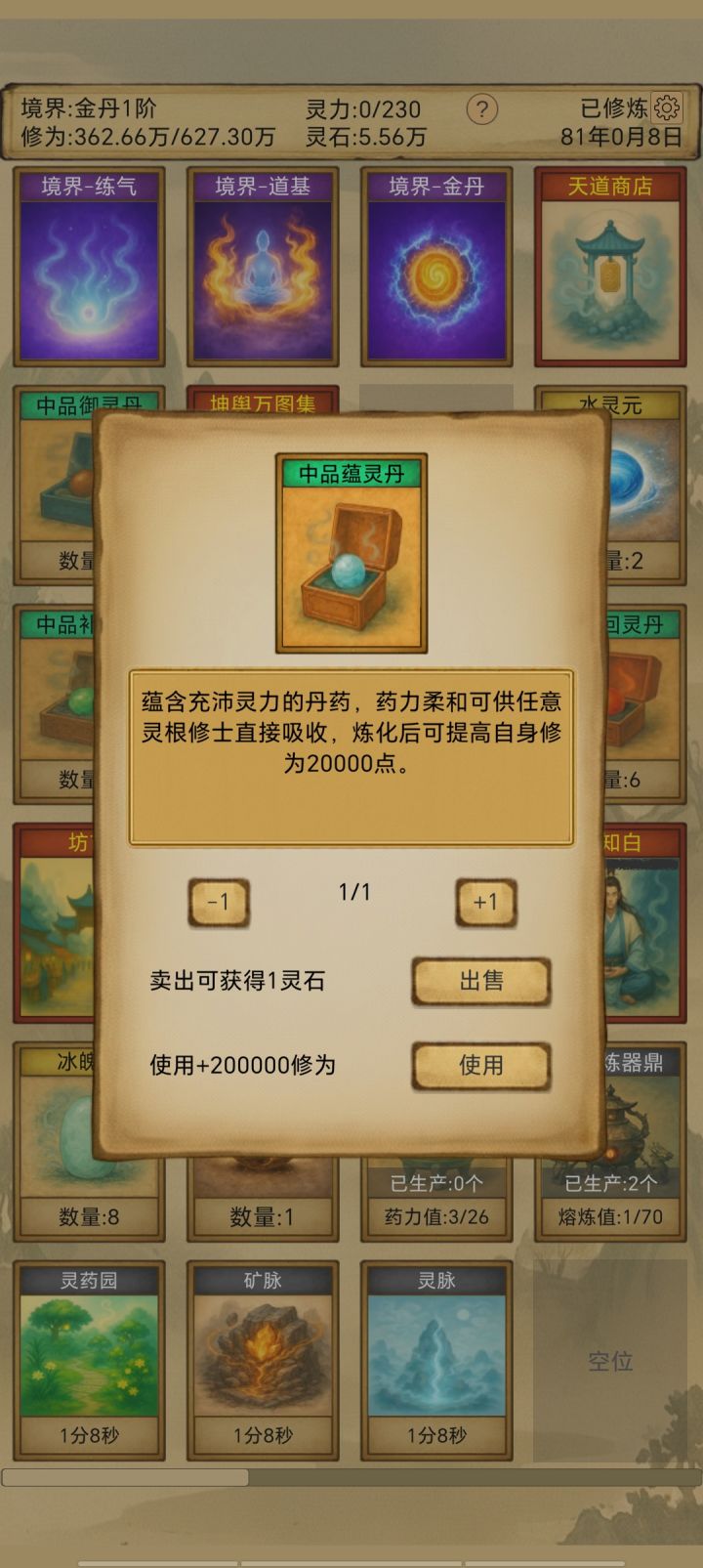 游戏是个好游戏,可以一直玩的,很轻松。这里告诉大家一个方法,群里也说过。新玩家刚玩的时候不要一直在线肝,会有几率遇到一个问题,只要避免就没任何问题了:就是当掉落或购买图纸后合成炉子时,要在游戏里大退重进一下,然后你就可以像我一样愉快的修仙了。 游戏内容还是挺丰富的。