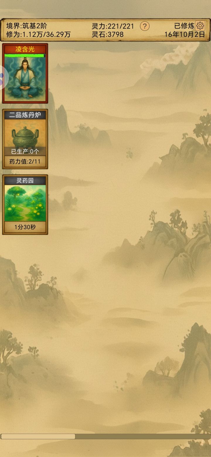 作为小小的元婴蝼蚁,小谈一下修行感悟1,广子,要玩的这个要看,也必看,加修行速度的功法从这里获得,不然升级很难,靠炼丹杯水车薪2,过图会给3种草药,一种炼丹草,一种修为草,一种回血草,炼丹草药性最高,炼丹用,建议先升级药园再炼丹,修为草吃了留着都行,回血草过图后补血3,过图给的矿石,建议先升级矿场,再升灵石矿,然后练器,有一套差不多的就行了,不用多搞4,突破修为注意了,不要一下升多级,先把