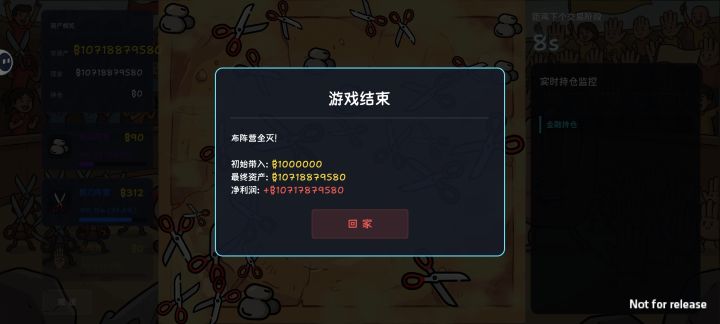 游戏难度在后期直线下降,因为资产太多了,一局能带入的却又不多(上限100万),所以爆仓几百次都是无所谓的事。