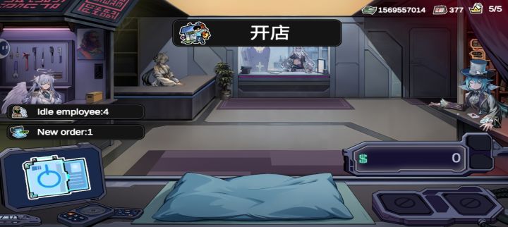 员工总计六人,技能上有差异化,上阵槽位有四个,需解锁后使用。每位上阵员工都要付工资,在仓库内可以使用技能改变物品随机词条属性,且有成功概率,很拼人品。技能有CD时间限制,员工操作过程中物品不会被售卖。