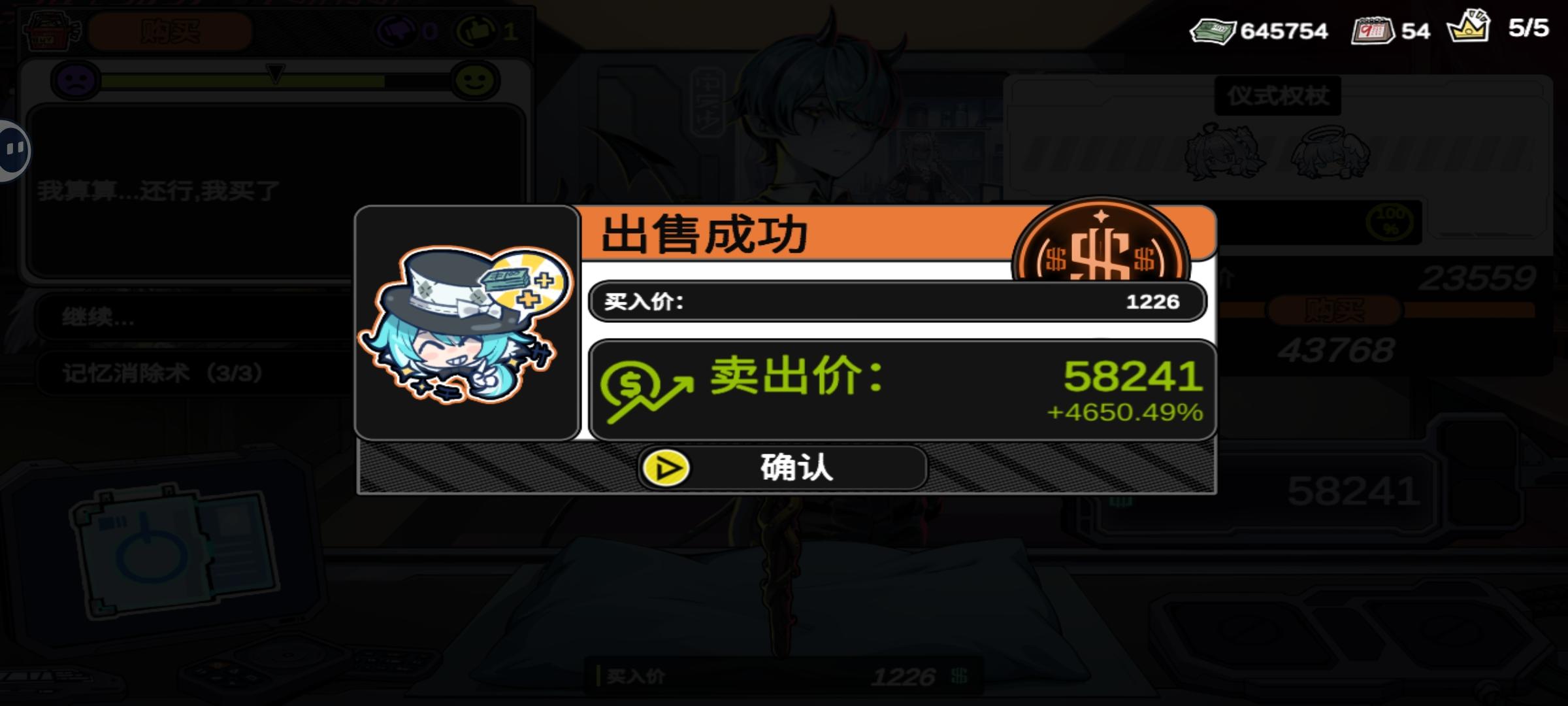 😇通关了,还有个999天挑战懒得弄了,最贵的东西卖了二十几万,最高的收益是四十多倍,不知道有没有更高的😃