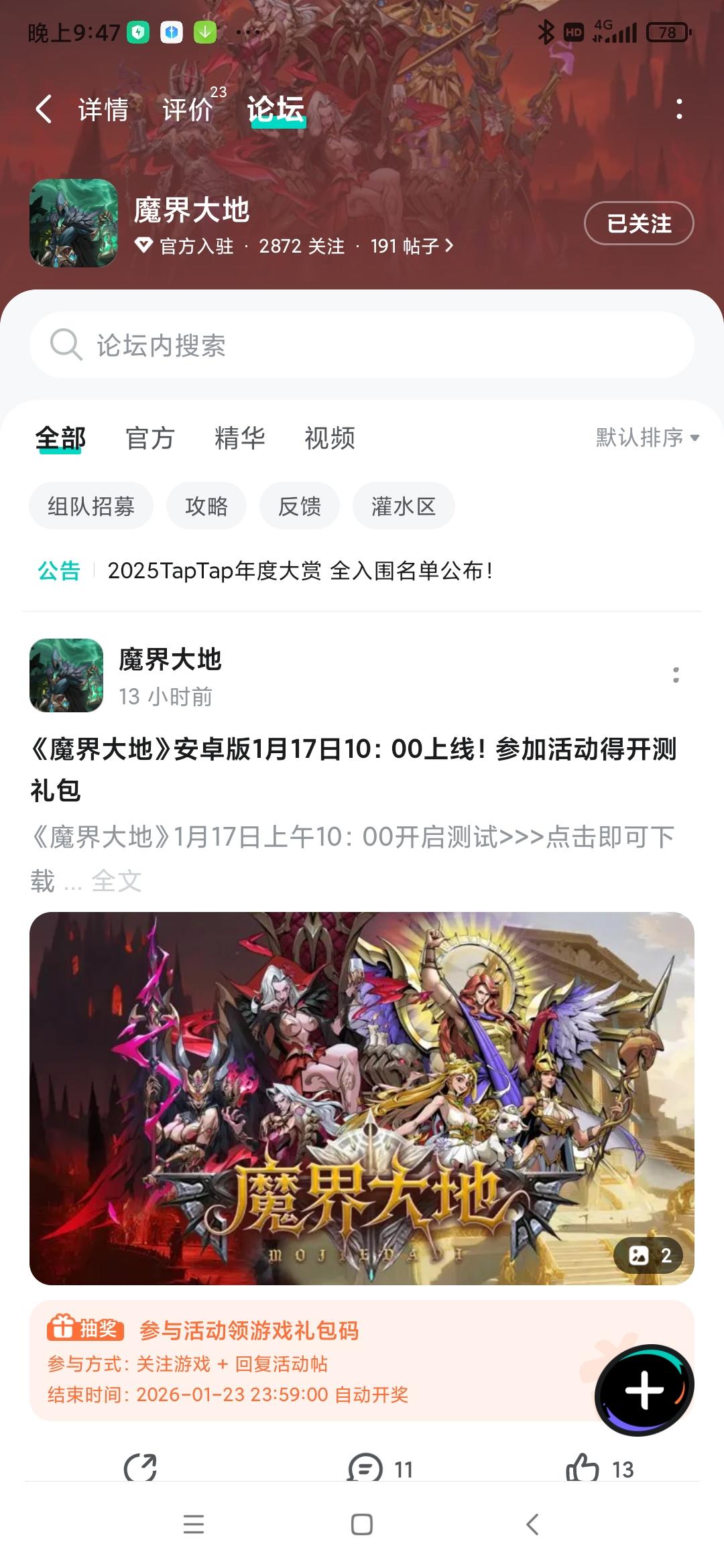 原本平静的瑟拉瑞亚,魔族邪神卷土重来,而你为守护瑟拉瑞亚,来到了《魔界大地》。>>>点击即可预约【参与方式】1.关注《魔界大地》且发新帖晒截图2.在本帖下方评论区分享发帖链接即可【活动时间】即日起~2026年1月18日 23:59【活动奖励】京东卡,共10份【注意事项】1.仅有符合活动要求的评论会被视为有效参与活动,若回复内容未能满足活动要求,则被视为无效回复,取消获奖资格。2