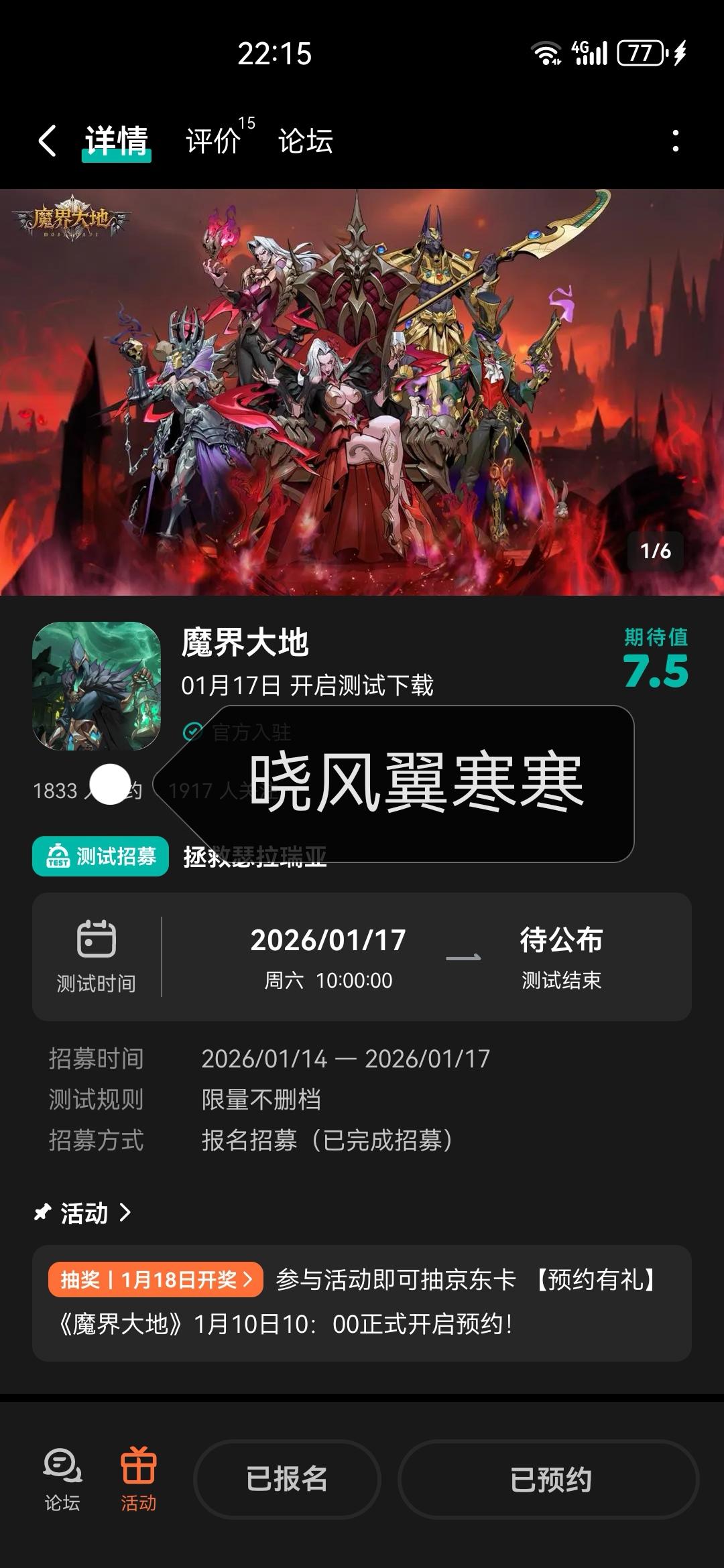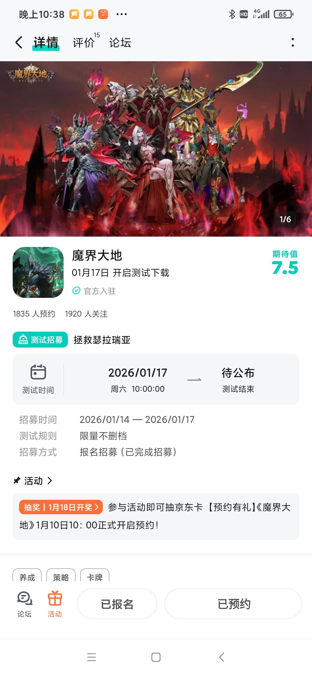 原本平静的瑟拉瑞亚,魔族邪神卷土重来,而你为守护瑟拉瑞亚,来到了《魔界大地》。>>>点击即可预约【参与方式】1.关注《魔界大地》且发新帖晒截图2.在本帖下方评论区分享发帖链接即可【活动时间】即日起~2026年1月18日 23:59【活动奖励】京东卡,共10份【注意事项】1.仅有符合活动要求的评论会被视为有效参与活动,若回复内容未能满足活动要求,则被视为无效回复,取消获奖资格。2