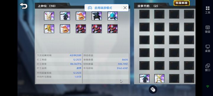 牛马是这个游戏的最终核心,它贯穿整个游戏的始终。1.牛马词条作用牛马的好坏主要看的是词条,好的词条可以明显提高收益,高收益则可以获得更多血肉核心,痛苦碎片,强化石。这些资源能造成磨坊和赌局提升,然后再影响牛马材料提升的正向循环。2.牛马词条排序最高优先级是材料加成,其次全队效率,最次极限压榨,然后是辅助特定时间可以提升收益的 时间管理大师,这些加成都是叠乘算法。例如两个材料50的牛马带来的