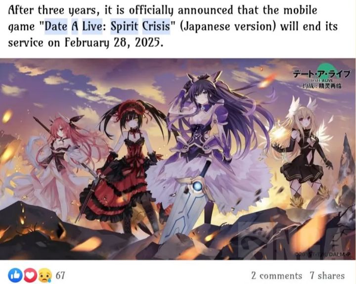 近日官方日推发文 手游《约会大作战:精灵再临》日服将于2025年2月28日正式停服。停服后可通过游戏内表单申请退还账号内未消耗的付费钻石(截至4月30日)。该作日服自上线运营至今已有两年,官方对玩家长期支持深表感谢。一部分人的青春游戏结束了#今天游戏圈发生了啥 #约战精灵再临