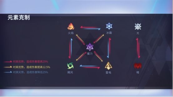 首先是我们对角色的品阶进行了重做,取消了B-EX的品阶和升阶机制,改为四星和五星两个星级;其次是对精灵所属的元素属性进行了调整,并增加了属性克制机制,属性种类重新规划为火焰、冰霜、雷电、飓风、魔力、光、暗这七种属性;同时对部分精灵的定位进行了调整