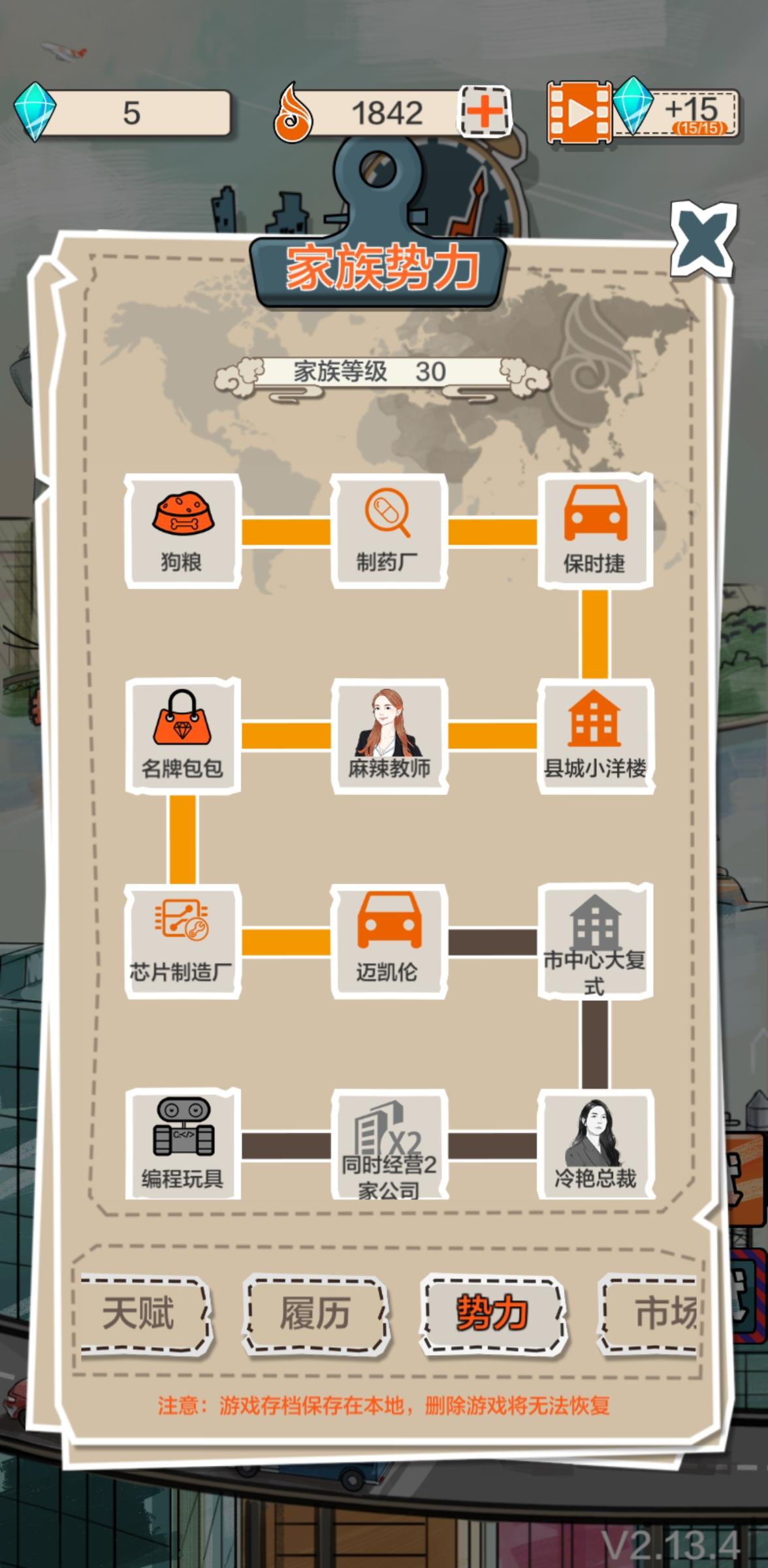 首先这个游戏题材挺吸引眼的,赚一个亿,里面的操作性挺简单的,玩法的话内容会简略一些,而且上限就75岁,虽然没玩几天,玩了好几次人生,玩最高总资产有到亿.然后会开启更多投资,像日常生活里的足球比赛、影片的投资,费用基本更高,玩到这时候基本已经快70岁了,就是可惜续命只有加五年,不能多加,或者能传承给子女,前期玩的话可以结伴情侣,每个人的加成都不一样,那个文艺青年个人觉得挺好用的,他会在你健康低谷的时候给你写经历获得一大笔资金,而且文艺青年可以让你的年龄永远18岁(然而以为这样可以长久投资,结果玩到后面它也是同步实际年龄的,所以这个感觉一直18没啥用就是看着心理安慰 玩的时候不会太特别在意年龄,更容易沉浸投资买卖啥),总体说游戏还是可以的,就是有些局限性,感觉要是能传承话人生蛮有意思的。