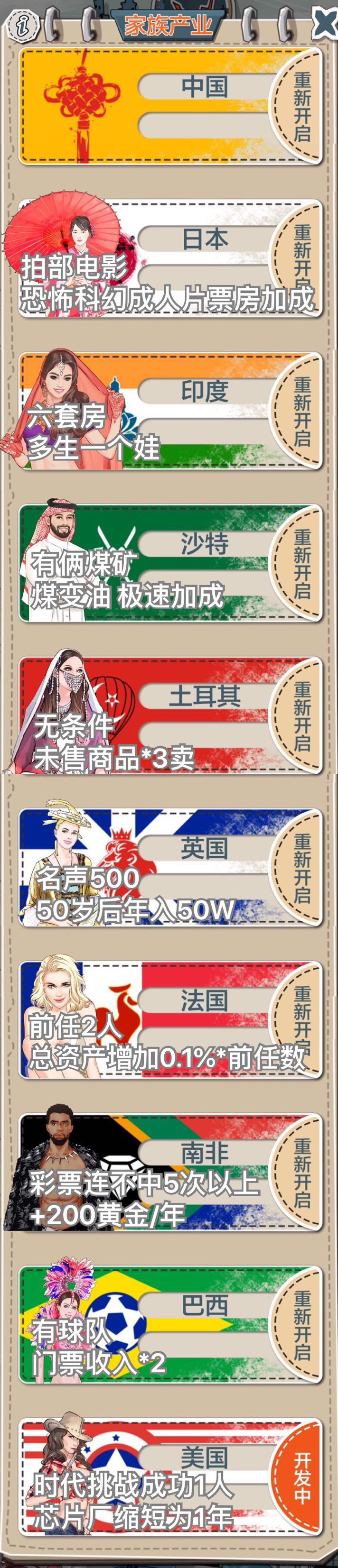 开局准备: 1.名门望族天赋10级,50点初始名声 2.带紫檀木盒开休闲模式,最好霸道总裁开局 3.直接刷约会圣地麻辣教师,没有就重开 4.刷到直接生,连生三胎 5.以150初始仓库为例,按白酒90/150,狗粮60/150,较容易控制两个商品的库存,使资产不超200w 6.过程按总资产每年灵活分配1w、3w、10w给子女,多给3w、10w,只有在暂时没钱的时候给1w,不要不给 最佳处理: