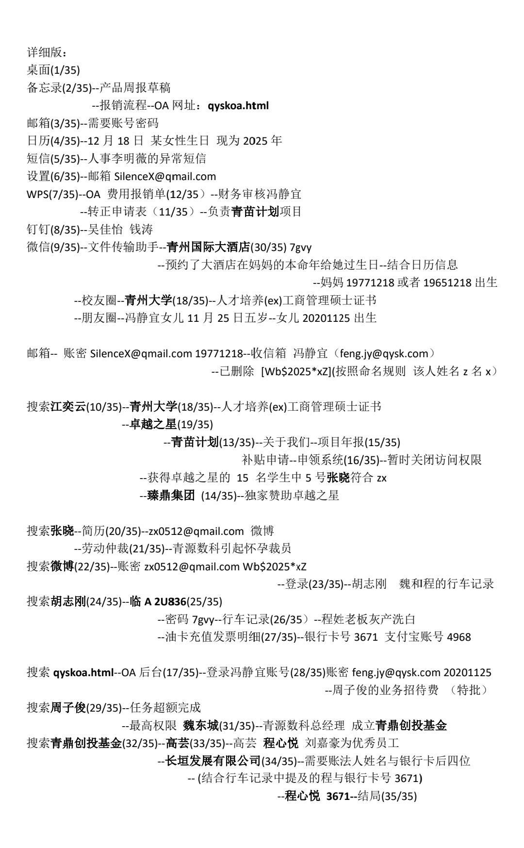 【公用线索】1-2&4-9开启桌面,熟悉办公软件(朋友圈也是可以看的,点不动说明是不重要的线索)3从【设置】可得邮箱账号从【日历】&【微信聊天内容】可得邮箱密码10 🔍实习生姓名,了解获奖经历11-12 由7可得转正文件&报销文件,了解主要产品工作为“青苗计划”官网开发13🔍“青苗计划”,官网,了解奖学金类型14🔍青苗计划的唯一指定金主,可得金主最近的赛事赞助15年度