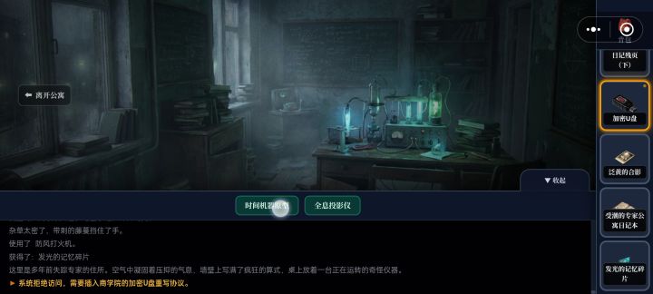 最后一个场景-公寓,不要先点时间原型碎片,否则就直接通关了