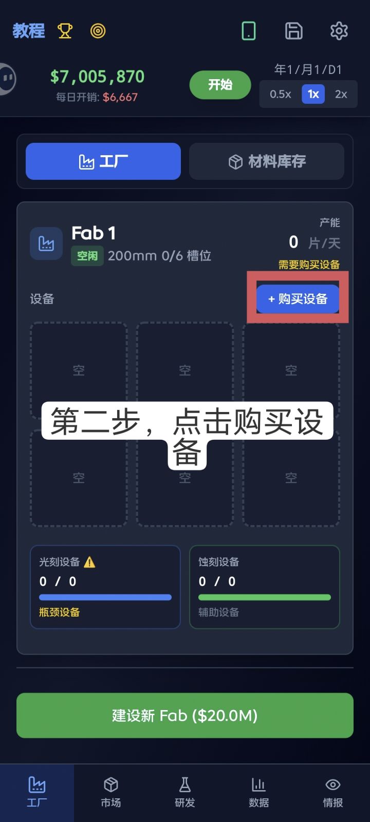 v0.1.4 版本正在审核中,即将发布,具体更新内容如下:1. 市场部初步建设,解放双手2. 追加新型设备,产能暴涨3. 优化提升良率和运行工程晶圆的体验4. 重做订单谈判+影响力,增加生产前提示5. 增强设备兼容性(部分之前无法游玩的设备,主要出现于 Android8/9/10等)6. 修复不兼容设备的显示效果问题(显示灰白色块等)7. 修复设备卖出/维护的问题8. 修复产能、自