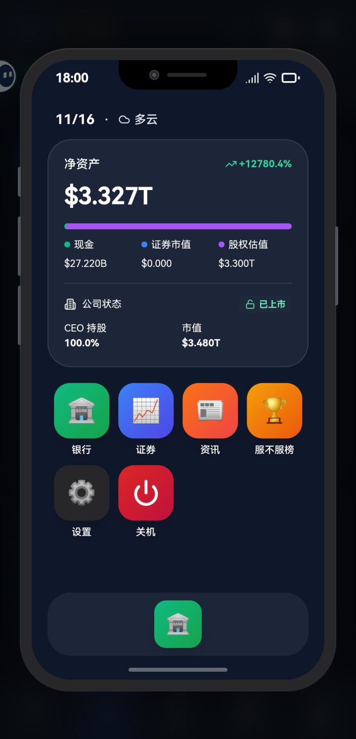 v0.1.4 版本正在审核中,即将发布,具体更新内容如下:1. 市场部初步建设,解放双手2. 追加新型设备,产能暴涨3. 优化提升良率和运行工程晶圆的体验4. 重做订单谈判+影响力,增加生产前提示5. 增强设备兼容性(部分之前无法游玩的设备,主要出现于 Android8/9/10等)6. 修复不兼容设备的显示效果问题(显示灰白色块等)7. 修复设备卖出/维护的问题8. 修复产能、自
