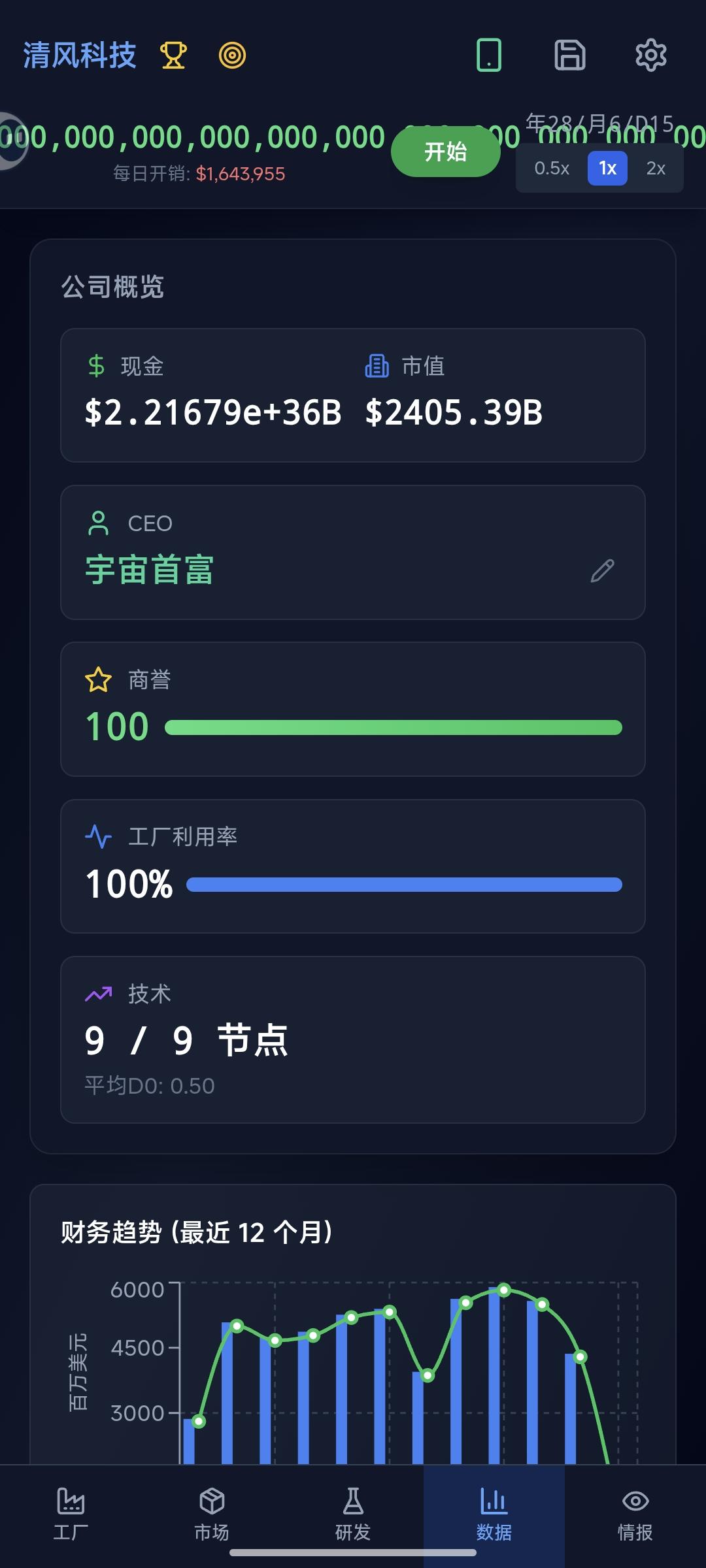 开局我推荐选辍学的那个然后先刷一个预估90~110M,融资拉满此时大概是37到45左右,两个2050t,大概还剩10~15左右,然后搞自动补货系统买完以后Lit或者安全补货都行,等机器到了,就可以先接小订单,注意前期还是90nm的时候一定要接,如果有流动项目先弄流动项目就行,然后研究65nm芯片在这三个月里就一直接订单就行,65nm出来以后把65nm的良率研发到95.5,然后一直接单搞45nm45