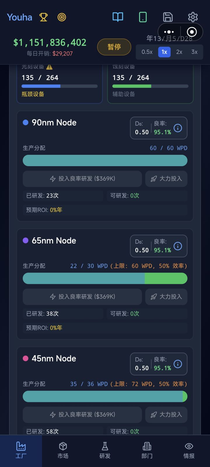 玩了5 6个小时,后面建设新的工厂,要1000B,虽然可以挣到,也不算很难,但这个增长速率可以慢点,然后就是到了后期因为大部分资产都在公司股票里,然后后面1nm垄断结束后,公司股票大幅下降,直接损失几个T