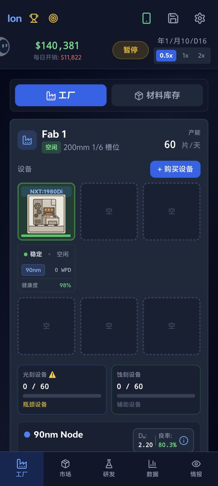 v0.1.3 版本正在审核中,即将发布,具体更新内容如下:1. 修复开局可能的订单不生成问题2. 修复部分机型顶部状态栏遮挡的问题3. 添加性能监控,分析性能问题,为后续性能优化做准备4. 修复超频联赛 SKU 刷新、结果显示问题5. 修复行业新闻显示问题6. 移除滑动切换以避免偶发问题7. 通牒系统优化8. CEO 薪资、董事会目标数值调整9. 修复不生成联名订单的问题,修复零