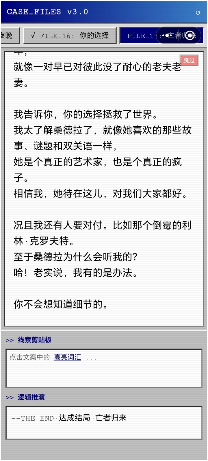 结局有两个,选择一个后还可以返回到上一章节选另一个