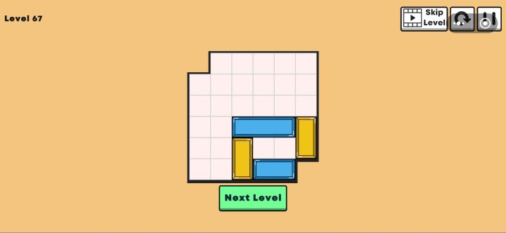 游戏中玩家移动方块并非是像华容道那样的可以验一个方向自由移动一个或两个单位,游戏内方块的移动可以往周围没有方块的方向移动,但是一旦移动,方块直到碰到其他物体前都不会停下来,尽管这样看起来加大了游戏难度,但实际上手后由于可操纵步数数量的骤降,游戏的难度也下降了不少,经常不过四五下就轻而易举的过关,游戏内也有其他机制,例如一些黑方块,一些带有铆钉的阴影(方块经过后不再移动),其他颜色的方块等,这些为游戏内容增加了不少乐趣。