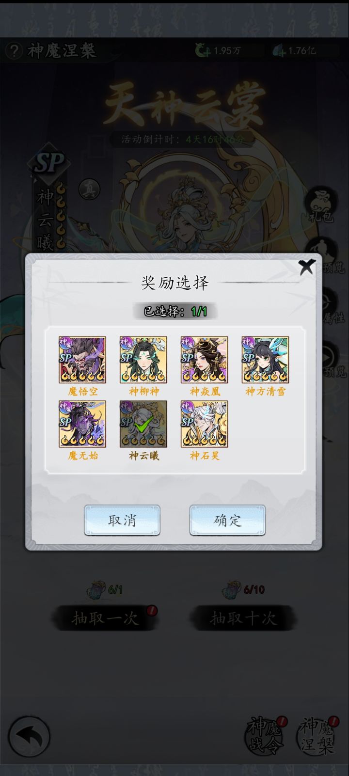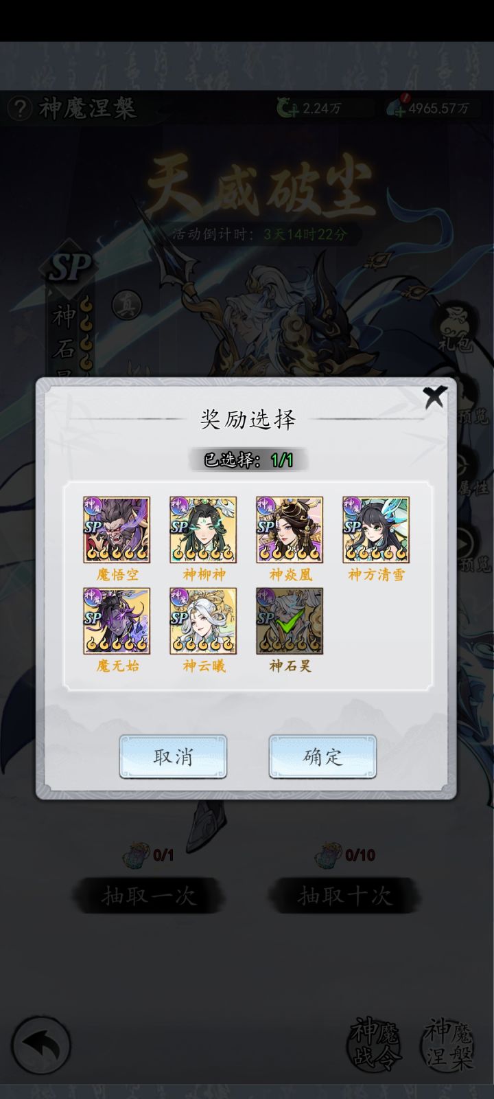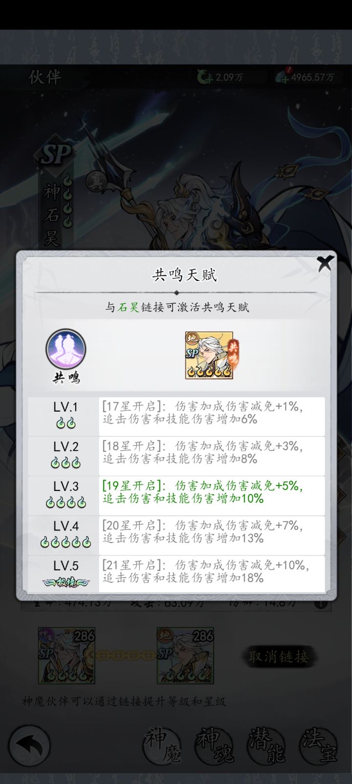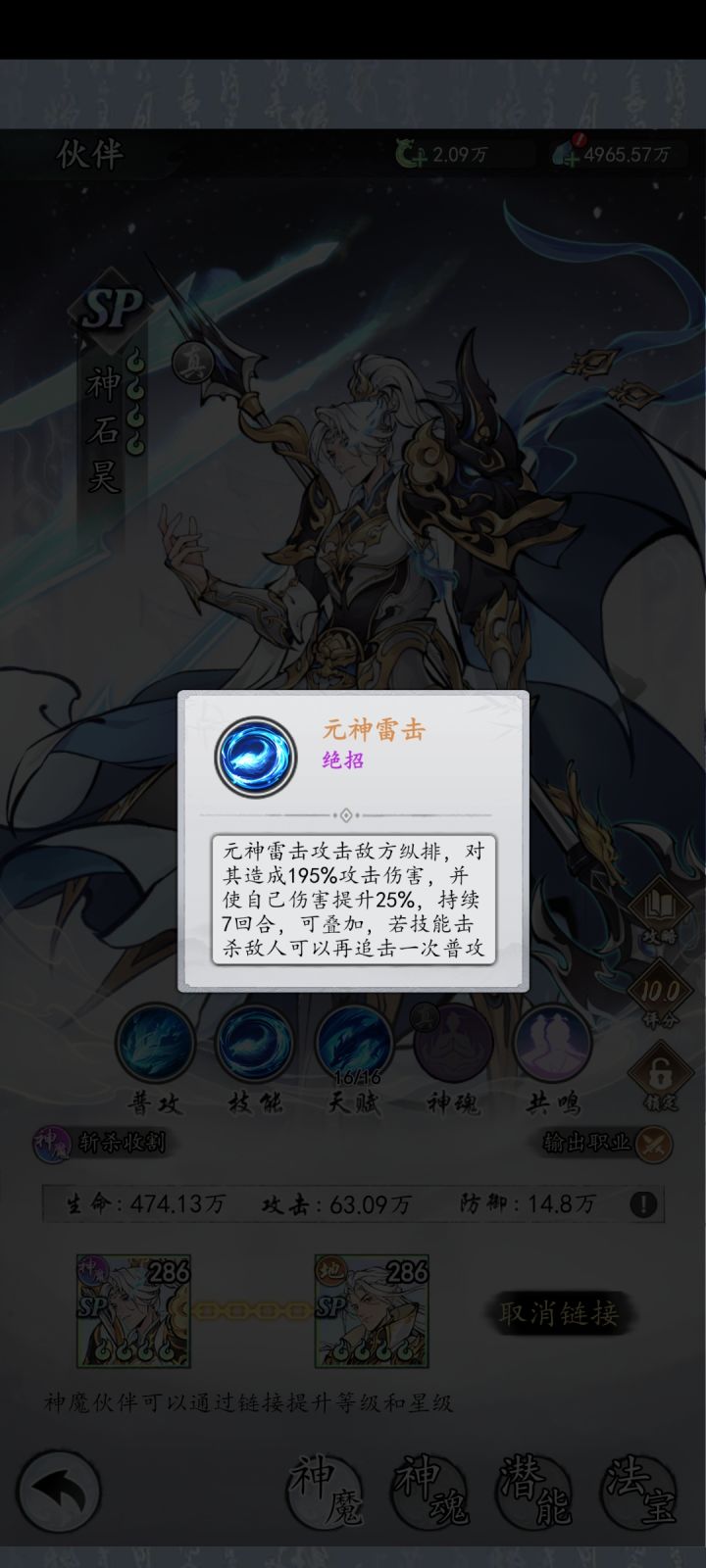 哈喽各位的新伙伴,这个游戏现如今也是正式公测了。我是来自开天s47服的花花,我将为你解答关于神魔将的选择与那些事1.神魔将的抉择(如图)目前神魔将只有7个,其中除魔悟空与神柳神外,都有对应名字的sp本体,如sp石昊对应图中神石昊, 想要玩的好中后期的长盘输出,推荐选择神炎凰链接sp炎凰, 有条件的可以再拿下一个魔悟空 注意:唯有链接对应角色才可开启共鸣,比如神石昊链接石昊(如