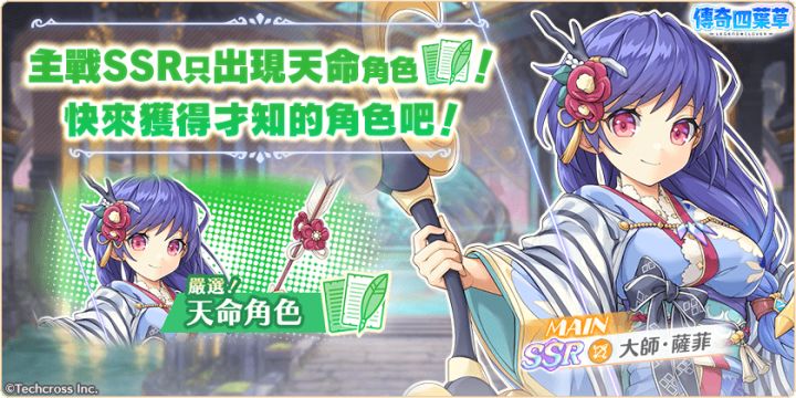 亲爱的玩家,您好!感谢您游玩『传奇四叶草』!今日的维护已经结束,现可登入游戏!◆内容更新・「背教者和恶灵的启示」活动举办中!・「背教者和恶灵的启示」活动举办中!」登入奖励活动!(明日8:00开始)・「拉斯普丁」「安娜塔西亚」必出STEP UP转蛋登场!・新角色「拉斯普丁」「安娜塔西亚」登场!・严选!天命角色转蛋(爱)举办中!・新角色转蛋免费劵套组贩卖中!・天命角色自选精选转蛋免