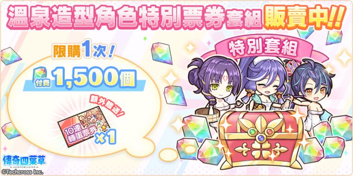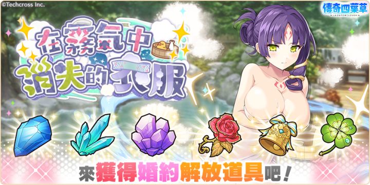 亲爱的玩家,您好!感谢您游玩『传奇四叶草』!今日的维护已经结束,现可登入游戏!◆内容更新・「在雾气中消失的衣服」活动举办中!・「在雾气中消失的衣服」活动举办中!」登入奖励活动!(明日8:00开始)・新角色「夜刀」「服部半藏」「葛饰北斋」登场!・婚约角色精选转蛋登场!・严选!天命(才知)角色转蛋举办中!・温泉造型角色必中套组贩卖中!・温泉造型角色精选转蛋免费劵套组贩卖中!・服部