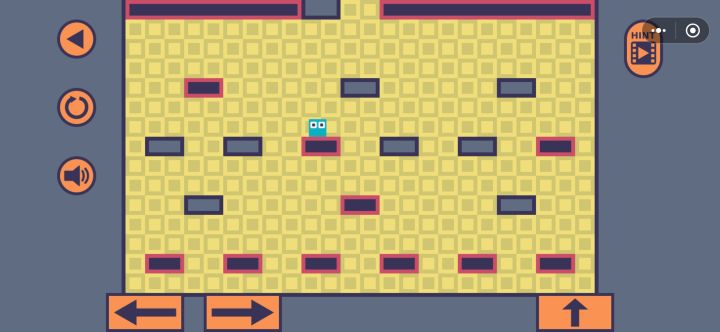 使用钩爪把蓝色方块勾上去,在空中按左右移动按键来脱离钩爪实现“跳跃”,钩爪设定让游戏脱离传统的跳跃移动方式,展现出来的手感却并不好,因为玩惯了那种摇杆移动和跳跃的操作,在玩这款游戏,钩爪钩到一半,老是提前按了方向键导致很难到达指定的平台,结果光操作就熟悉了半天。