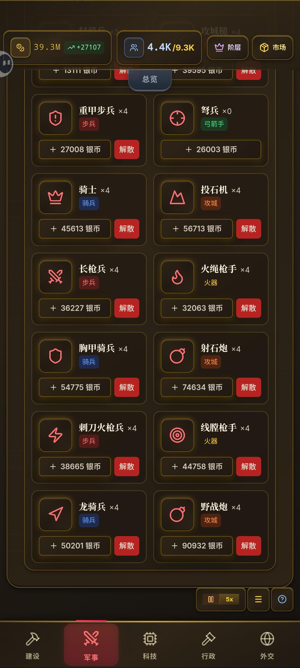 9️⃣用从商人那里剥削来的钱养军队,分数比其他国高一点就行,直接宣战!!!军费1就可以,军人收入为负就补贴,阶层奢侈以上负收入不用管。