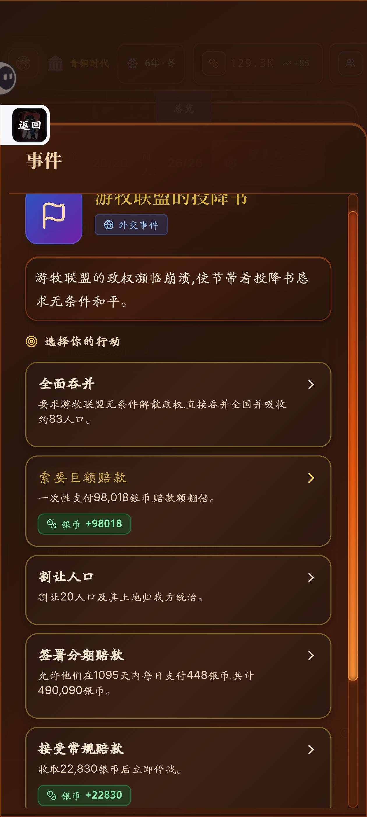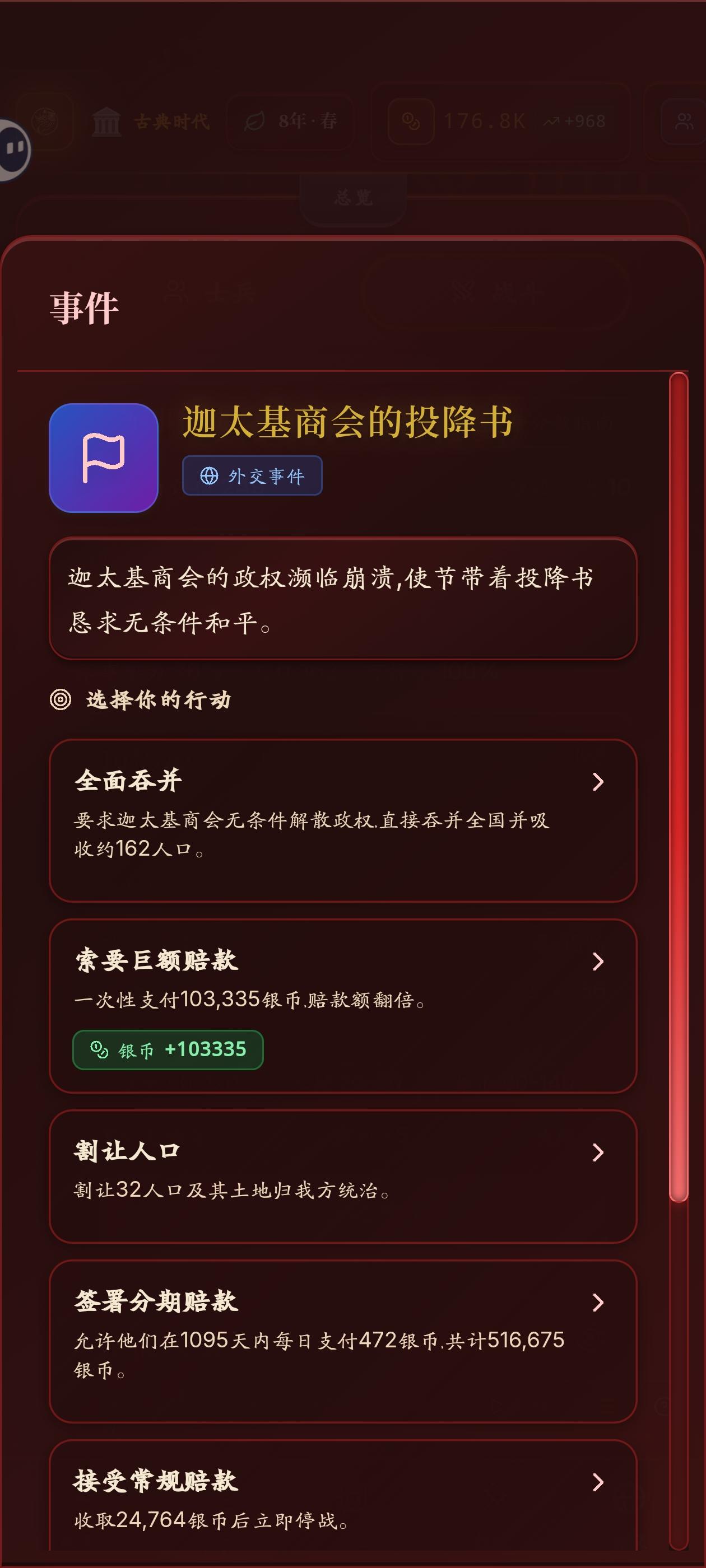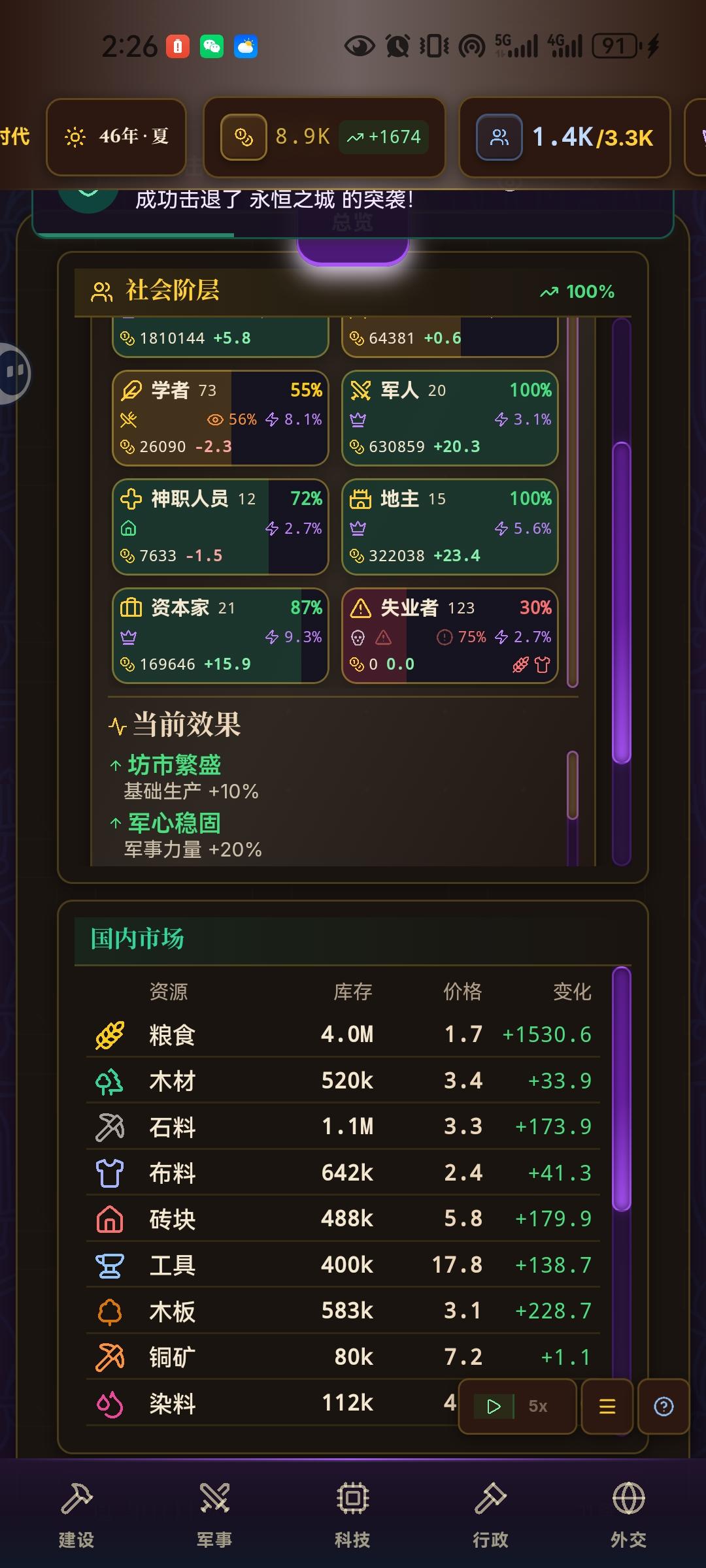 刚刚升级一个时代,军队飙升,直接负债卡死。希望尽快修复bug,其他都挺好,还有贸易那个建议调整一下。价格变动快,跳来跳去的眼睛都看麻了。
