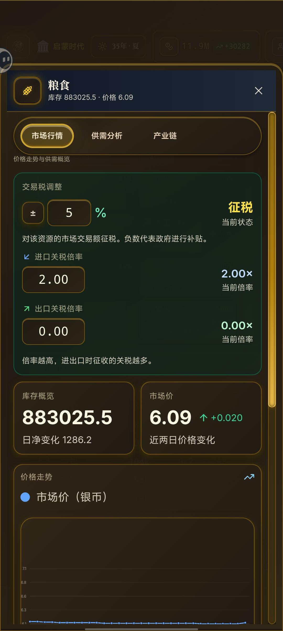 这些产品留在国内市场也没什么用,再加上市场涨降价只看供需比,再加上科研产出积累一定库存开科技后库存降低,科研涨价,和在时代后期科研大量积压花不出去导致学者收入微博的游戏经验看我们或许可以尝试在一种产品积压大量的情况下将生产其的阶级重税(感觉最好是营业税)以赶走他们去做别的产业从而使供给端远小于需求促进商品涨价,然后价格涨得足够高了或库存快耗完了再把税取消,让他们回去,目前只是想法,等会我拿我档尝试