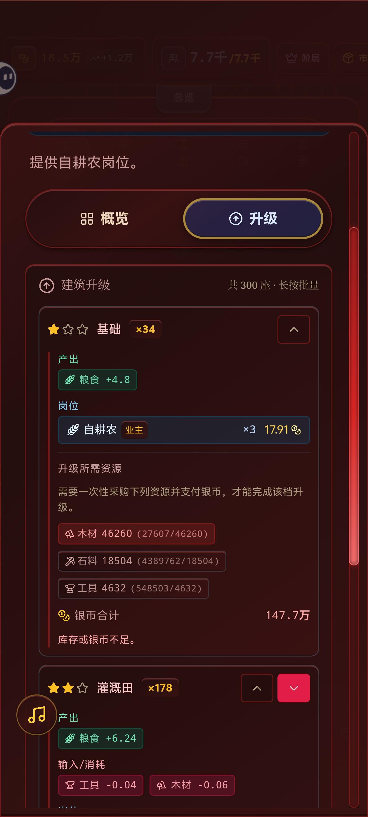 尽力了,商人到中期不知道为什么突然没钱了,地主也是突然消失了,粮食价格也是突然涨起来了,直接失控了