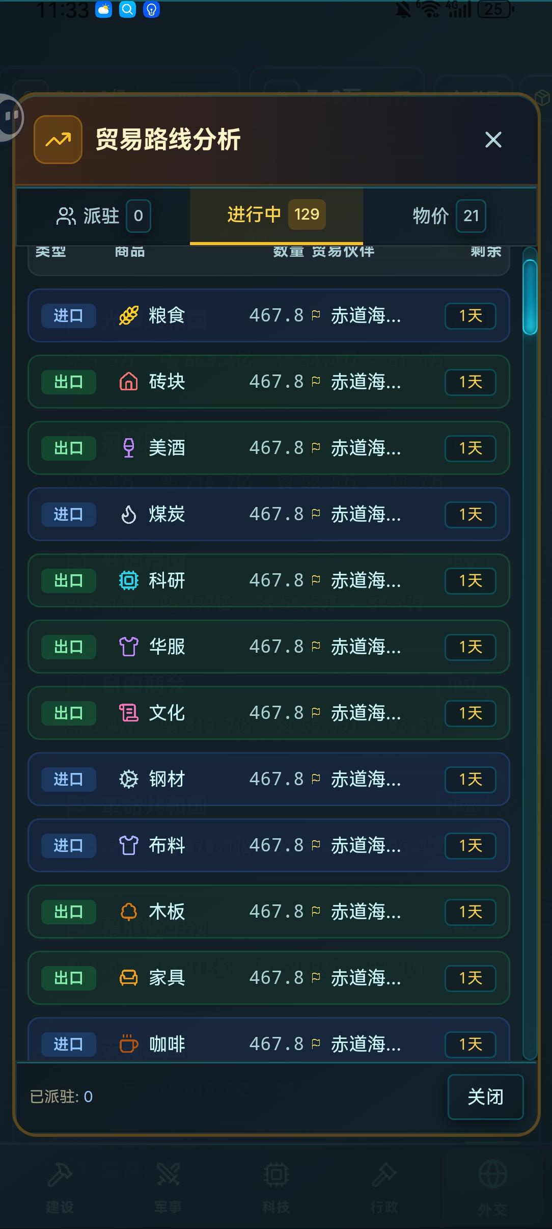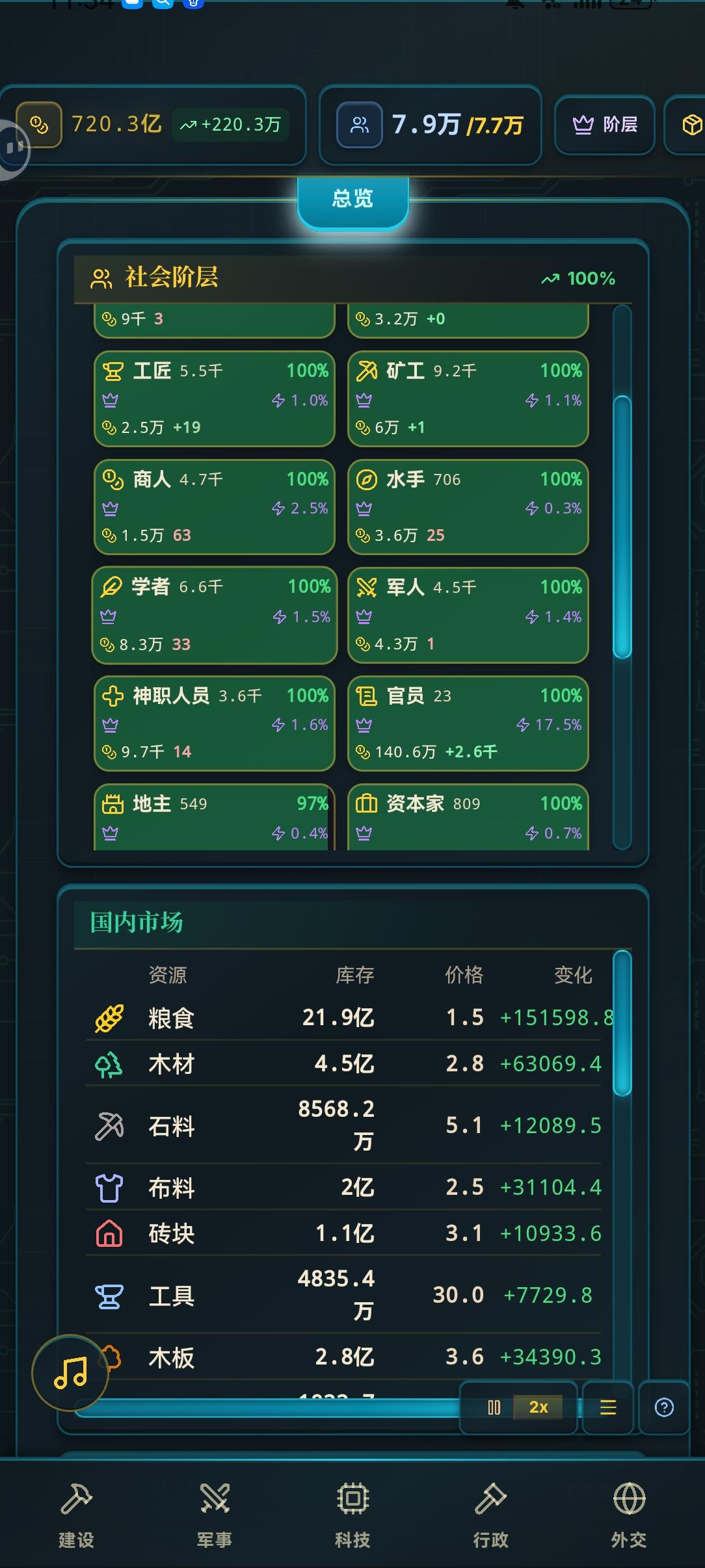 商人属实是调控物价的神,产能太多了怎么办,卖给邻居吧,产能太少了怎么办,从邻居那买吧,一直开着自由市场啥也不用管只需要无脑拉人口就行