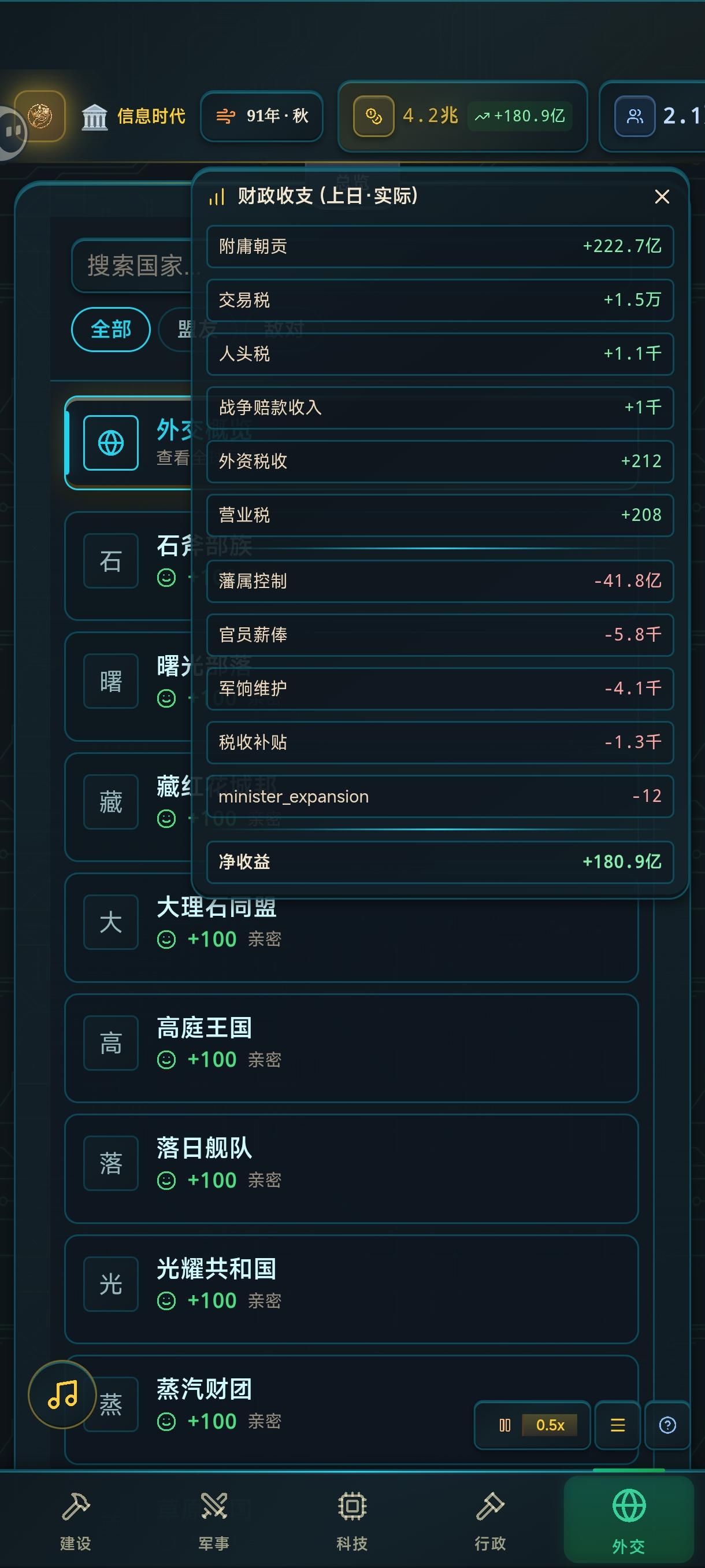 开局很容易,直接拉人拉生产然后快速整学者和商人,然后就可以拉税,涨钱,最后爆兵打死同时代的al国家,吞并之后再进入到下一个时代。这样子就不怕了,第一个时代只需要整5级兵营,然后招12个民兵12个投石兵就能随便打了。第二个时代先升到10级兵营,然后多招10个长矛10个弓箭10个战车,加在一起共54个兵,就能消灭一大半。剩下两三个强一点的al,就等你先吞并完其他al后,再多爆10长矛10弓箭10战车,