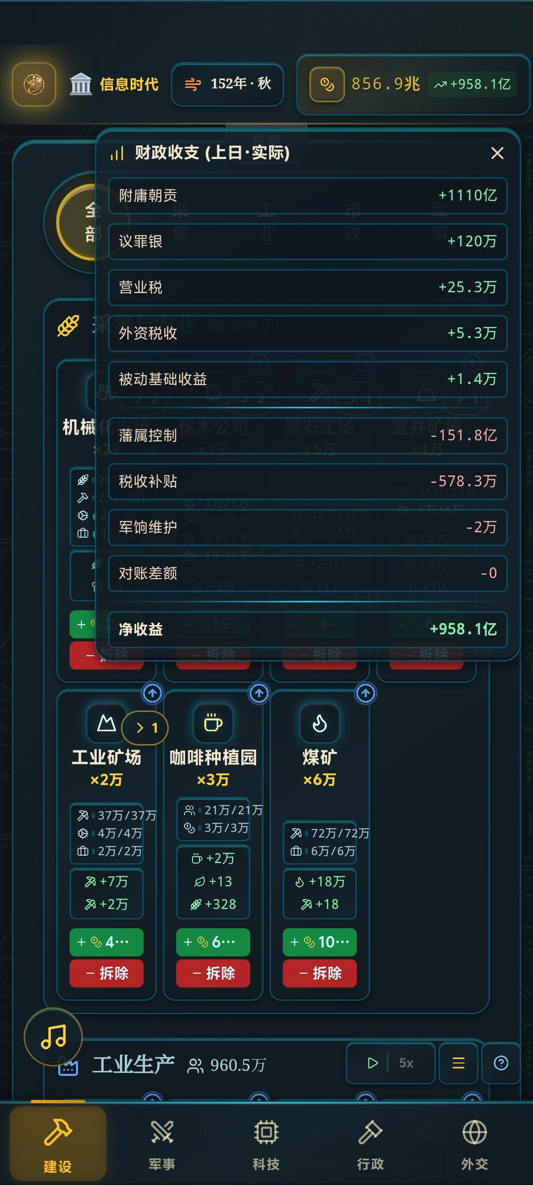 明明禁止官员扩建设施了,但是所有官员增建设施,还是逮着一个猛建。人口根本不够他用,破坏我的生态链。