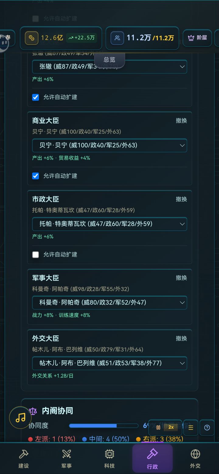 基本啥政基本啥政策都没定,纯自由放任,后面懒得自己造东西了,发现他能自己造就,让他全自己造的,仗也不打,然后就起飞了#游戏日常