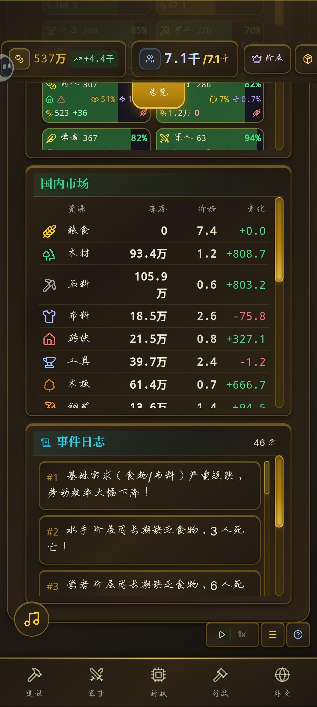 尽力了,商人到中期不知道为什么突然没钱了,地主也是突然消失了,粮食价格也是突然涨起来了,直接失控了