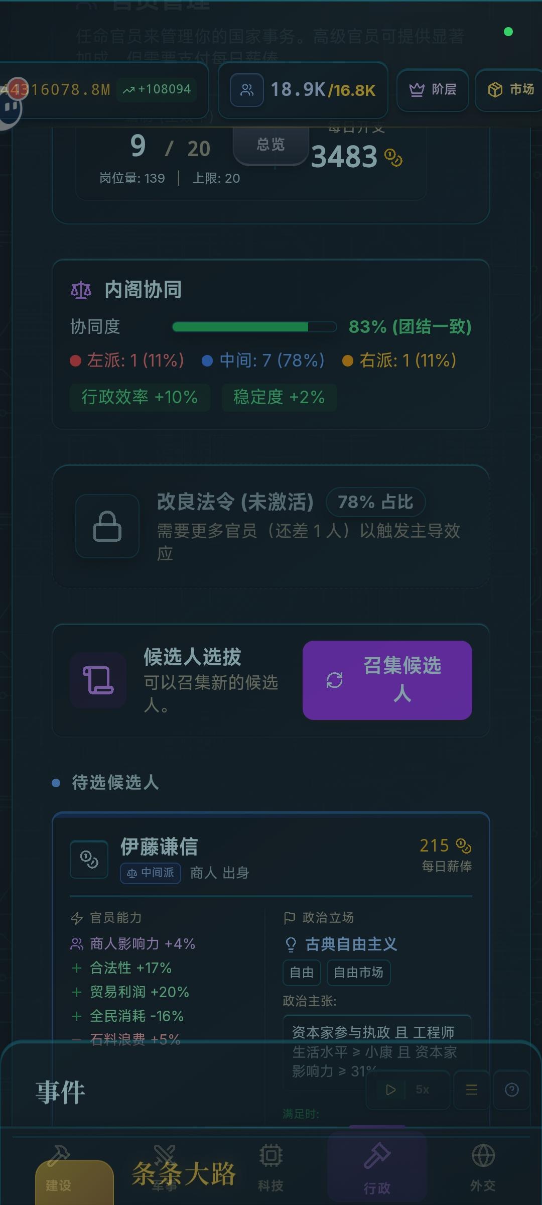 非经济学专业,看不懂文明百科里的各种公式,略懂一点历史,给玩不下去的朋友们提供参考🤓👆思路是不解决经济危机,不管物价,靠战争转嫁矛盾,索取巨额赔款补贴国内阶级、补贴生产。用税收和战争财升级建筑投产。目前只玩了简单模式,玩到封建时代1️⃣开局优先发展生产,把基础建筑都点出来,确保没人失业,税率不要动(人头税不超过5)2️⃣有阶层影响力扩大,就让他们加入执政联盟,优先保证合法性3️⃣不用着急
