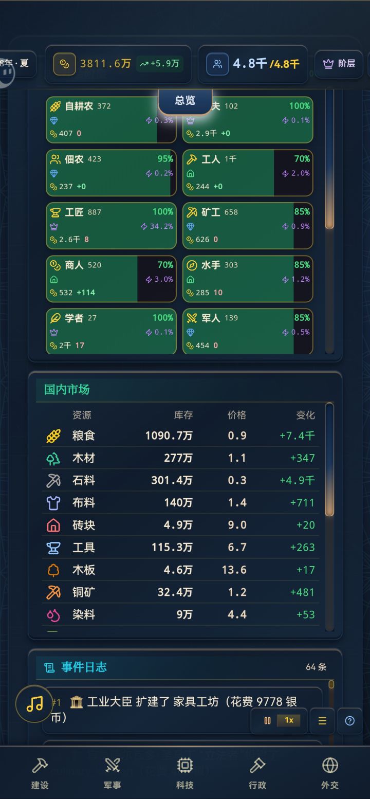 我寻思玩商业帝国,人全搞商业去了,没人生产,然后突然军人反了