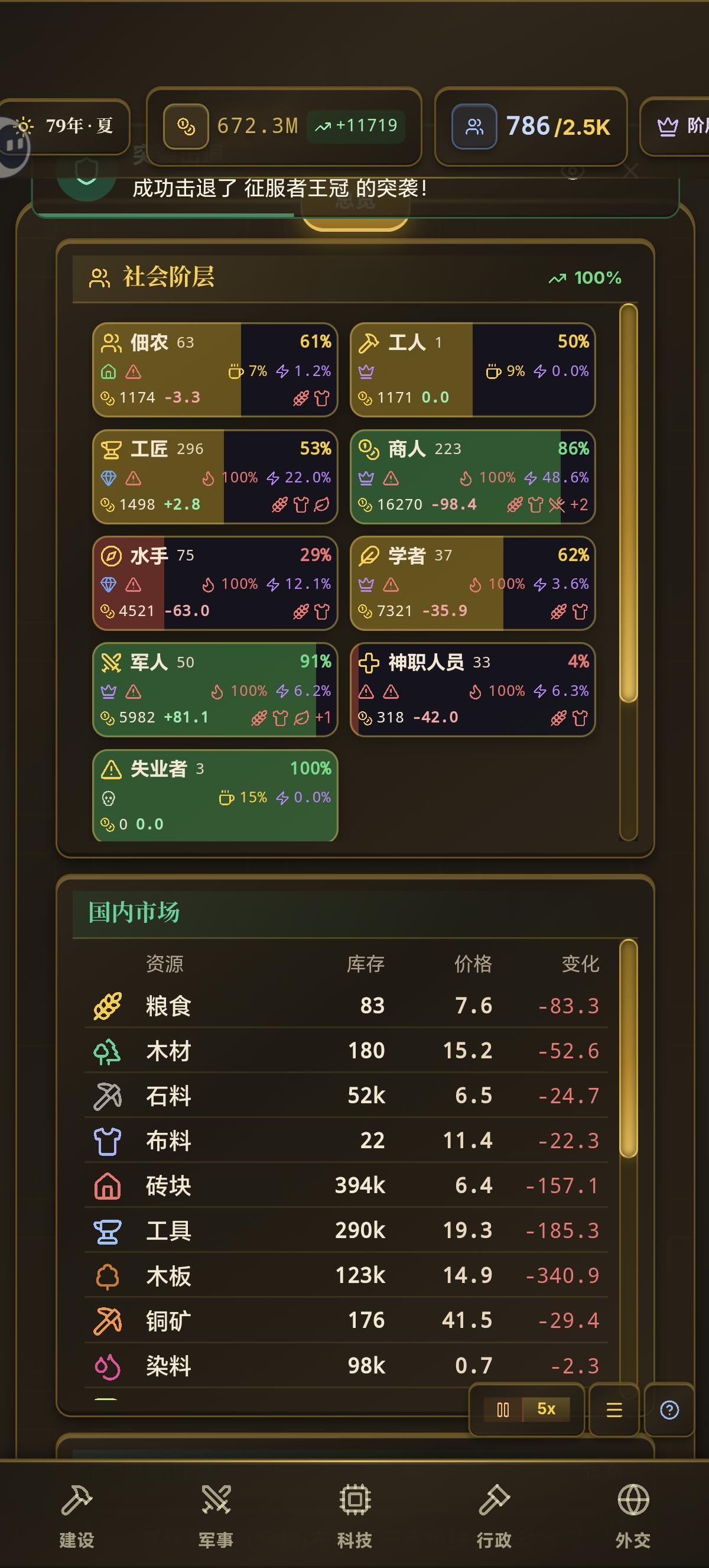 非经济学专业,看不懂文明百科里的各种公式,略懂一点历史,给玩不下去的朋友们提供参考🤓👆思路是不解决经济危机,不管物价,靠战争转嫁矛盾,索取巨额赔款补贴国内阶级、补贴生产。用税收和战争财升级建筑投产。目前只玩了简单模式,玩到封建时代1️⃣开局优先发展生产,把基础建筑都点出来,确保没人失业,税率不要动(人头税不超过5)2️⃣有阶层影响力扩大,就让他们加入执政联盟,优先保证合法性3️⃣不用着急