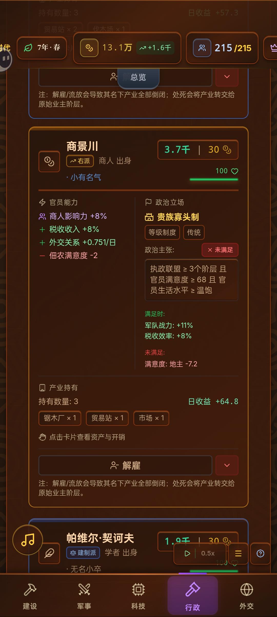 地狱模式财务状况是怎么回事?我以为官员贪污全部解雇,结果要的太多,布料满足不了,然后团灭了
